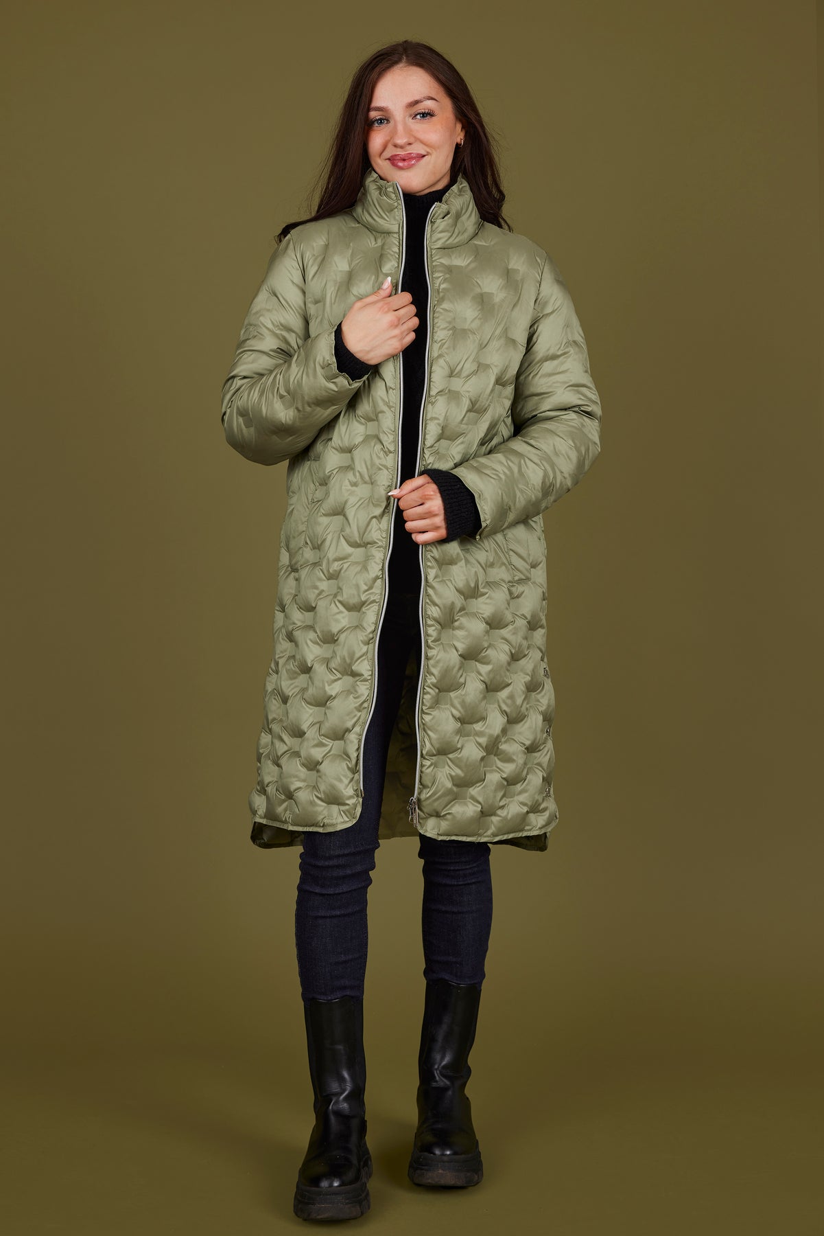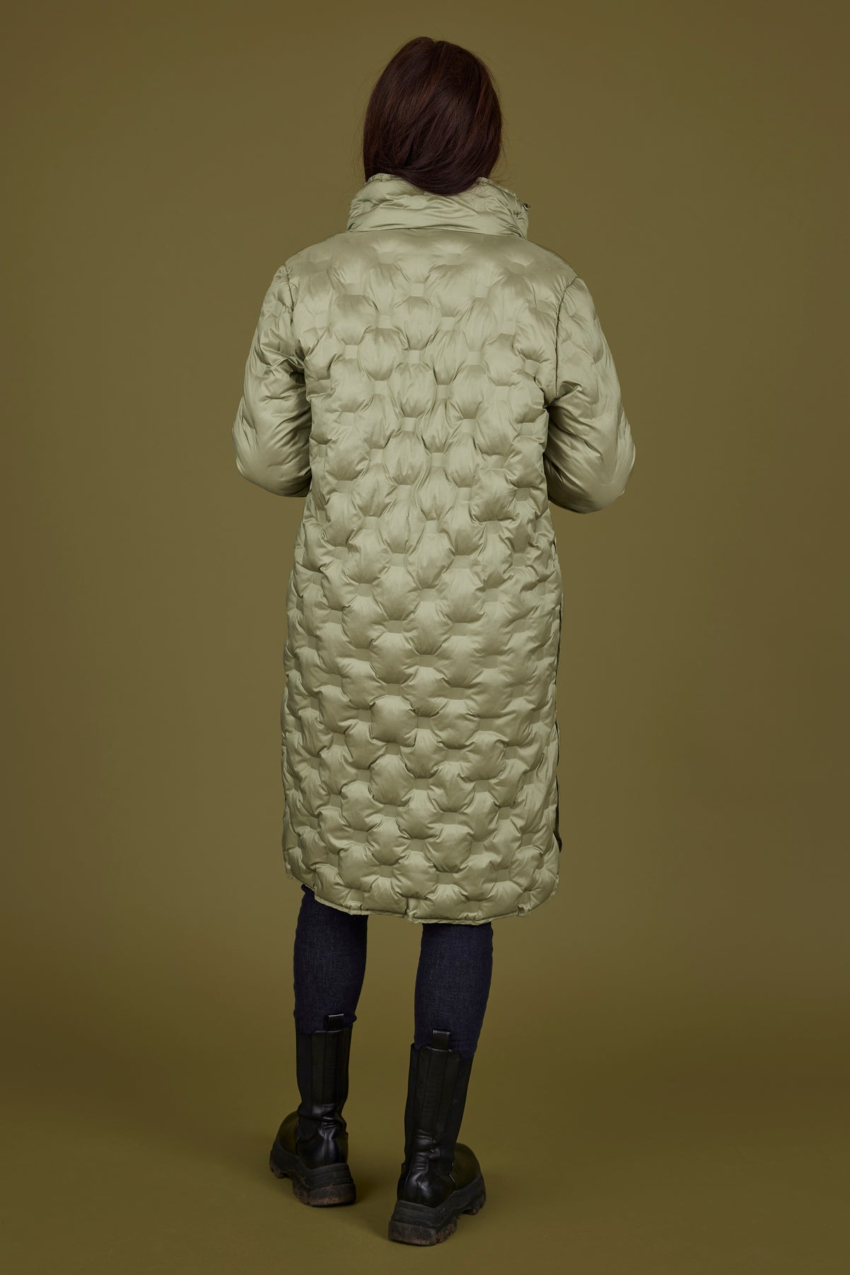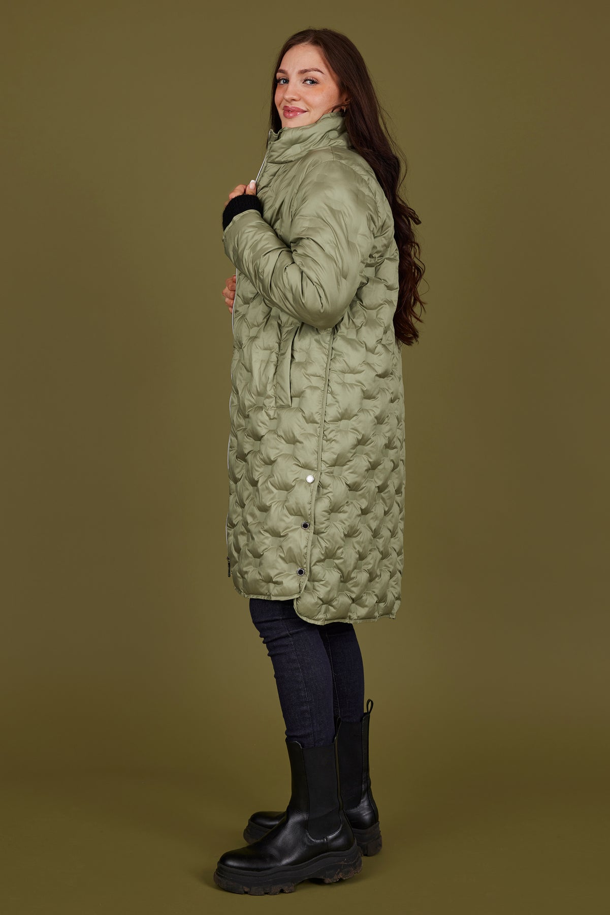Normann - Lorena síð úlpa með technical down fyllingu sem er eins konar dún-líki, gervidúnn sem hefur sömu eiginleika og alvöru dúnn. Vatnsfráhrindandi efni, gott snið, rennilás í báðar áttir að framan, góðir hliðarvasar, hár kragi, rúnuð að neðan, aðeins síðari að aftan, smellur á hlið að neðan til að auka hreyfileika. Góð fyrir veturinn.