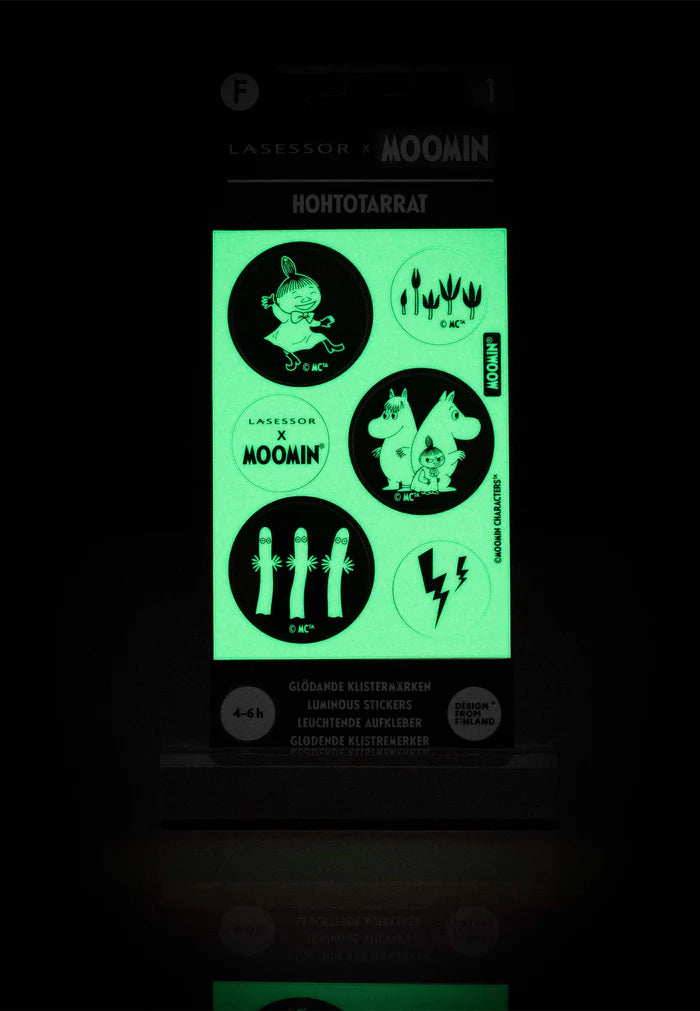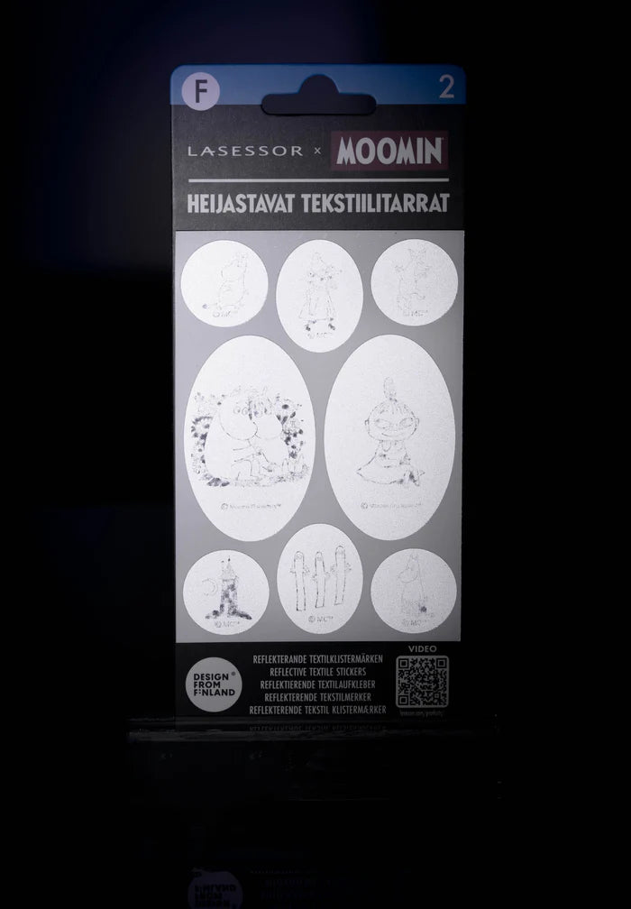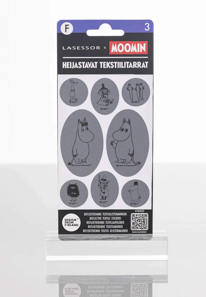 Fallegir límmiðar með endurskini, hægt að líma á flíkur, töskur, hjól og nánast hvað sem er. 3 Múmín gerðir í boði: