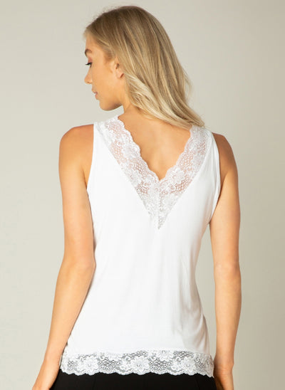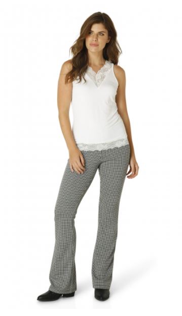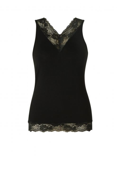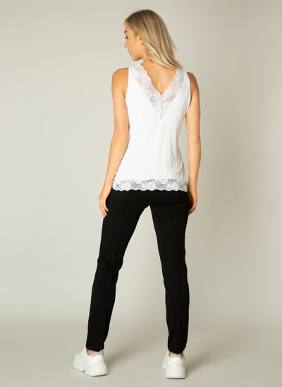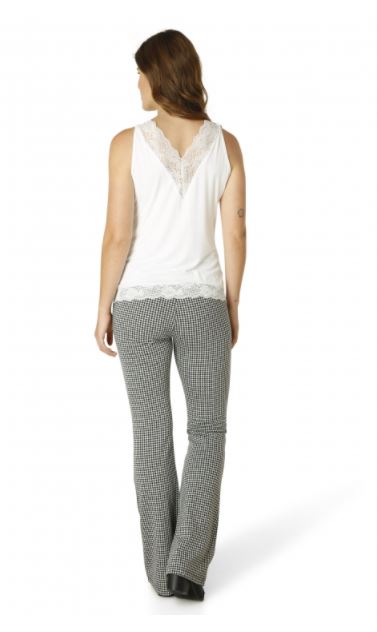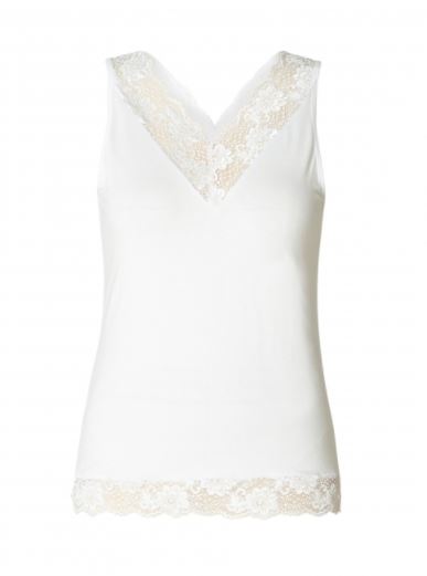 EA&SY by Yest, toppur með V-hálsmáli með breiðum hlýrum með blúndukannti að framan og aftan líka blúnda aneðst á bol.