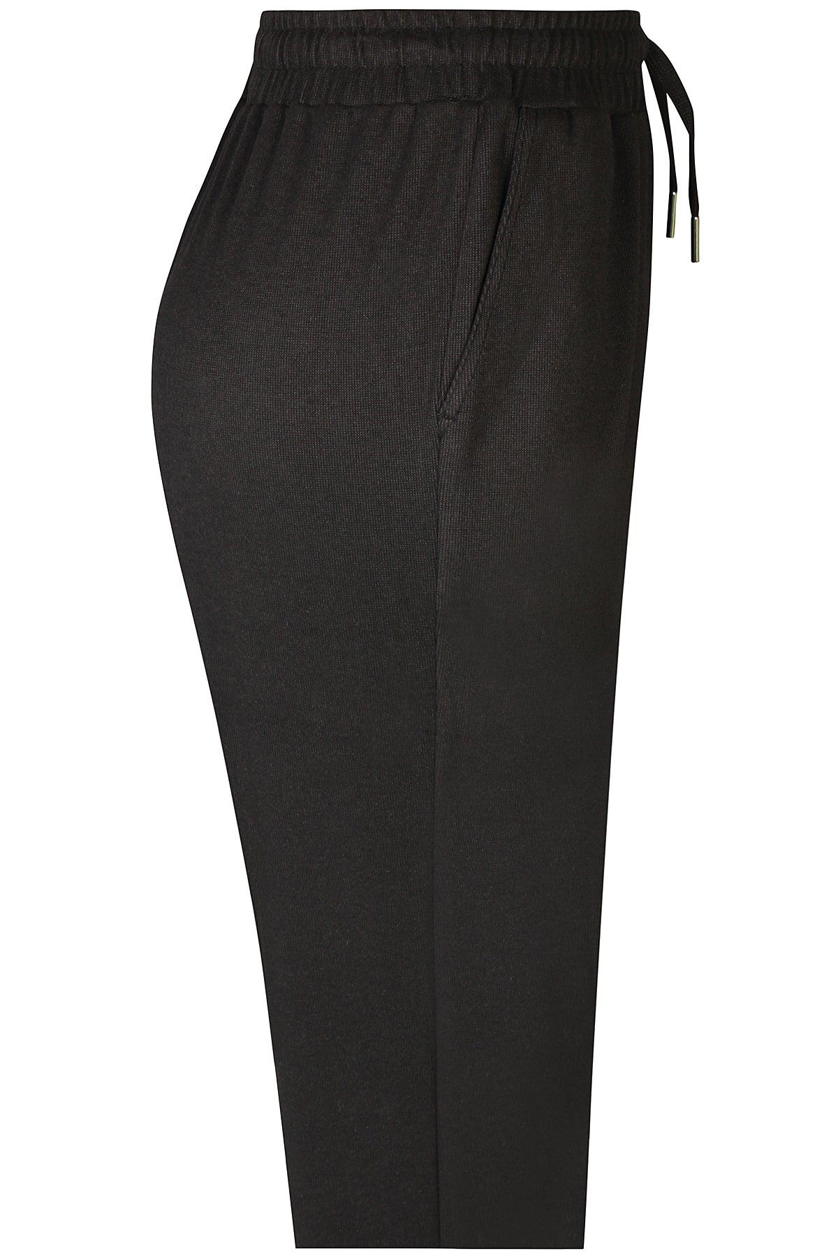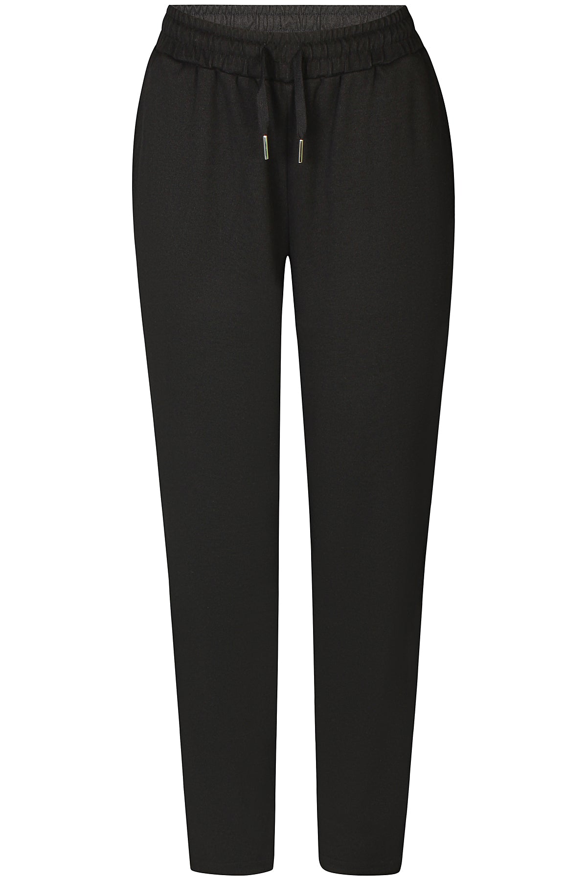 Ze-Ze, mjúkar og þægilegar buxur með opnum vösum - Teygja í mitti og band til að draga saman, Beinar skálmar sem þrengjast örlítið niður, ná vel upp og sitja vel. Örsmátt svart teinótt áferð í efni þar sem sérst smá glái í efninu.