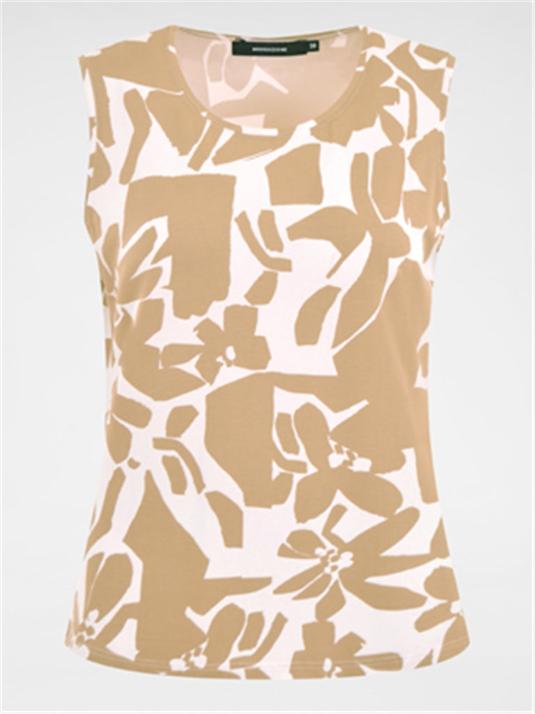 Navigazione - Beryl flottur og þægilegur hlýrabolur með fallegu mynstri og rúnuðu hálsmáli. Hvítur í grunninn með beige blómamynstri. Passar vel hversdags og spari og frábærir í fríinu og ferðalögum.