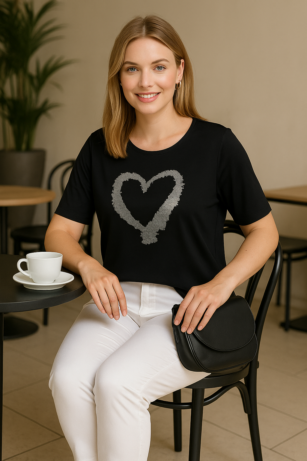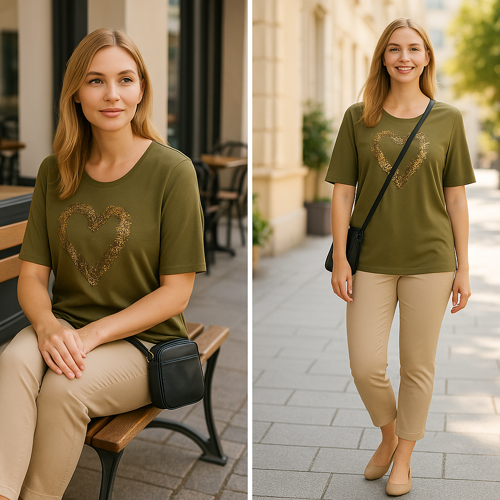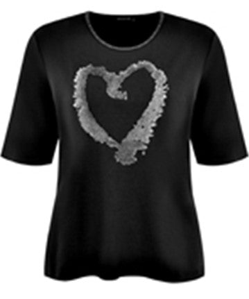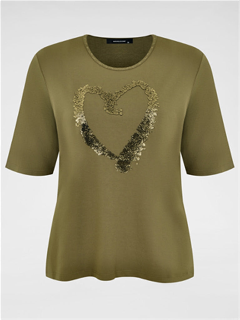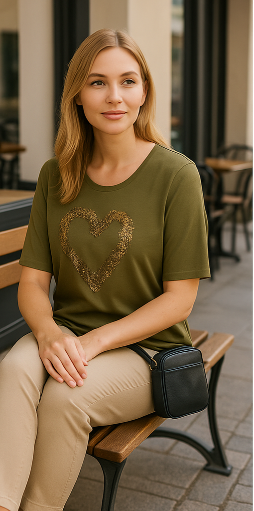 Navigazione - Imogen stuttermabolur með rúnuðu hálsmáli, skrautsteinum og hjarta að framan. Flottur sem hversdagsbolur sem passar vel við gallabuxur og treggings. Græni bolurinn er með gylltum skrautsteinum og saumum, svarti bolurinn er með silfruðum skrautsteinum og saumum.
