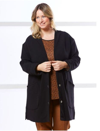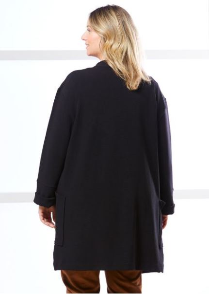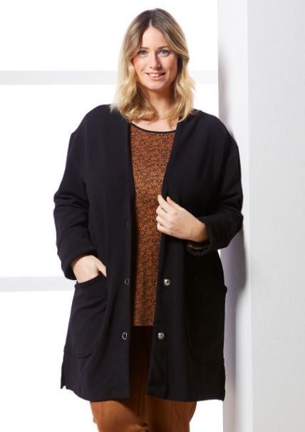 No Secret - Manya mjúkur og þægilegur peysujakki með góðum djúpum vösum. Riffluð áferð á efninu. Þrjár smellur að framan, og smá klaufir hliðarsaumum. Vel síðar ermar sem bjóða uppá uppábrettingu. Þessi gengur með öllu.