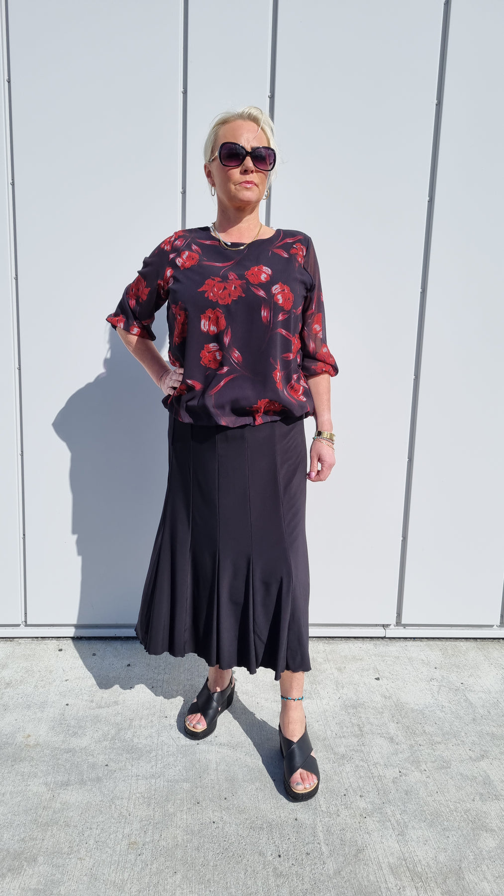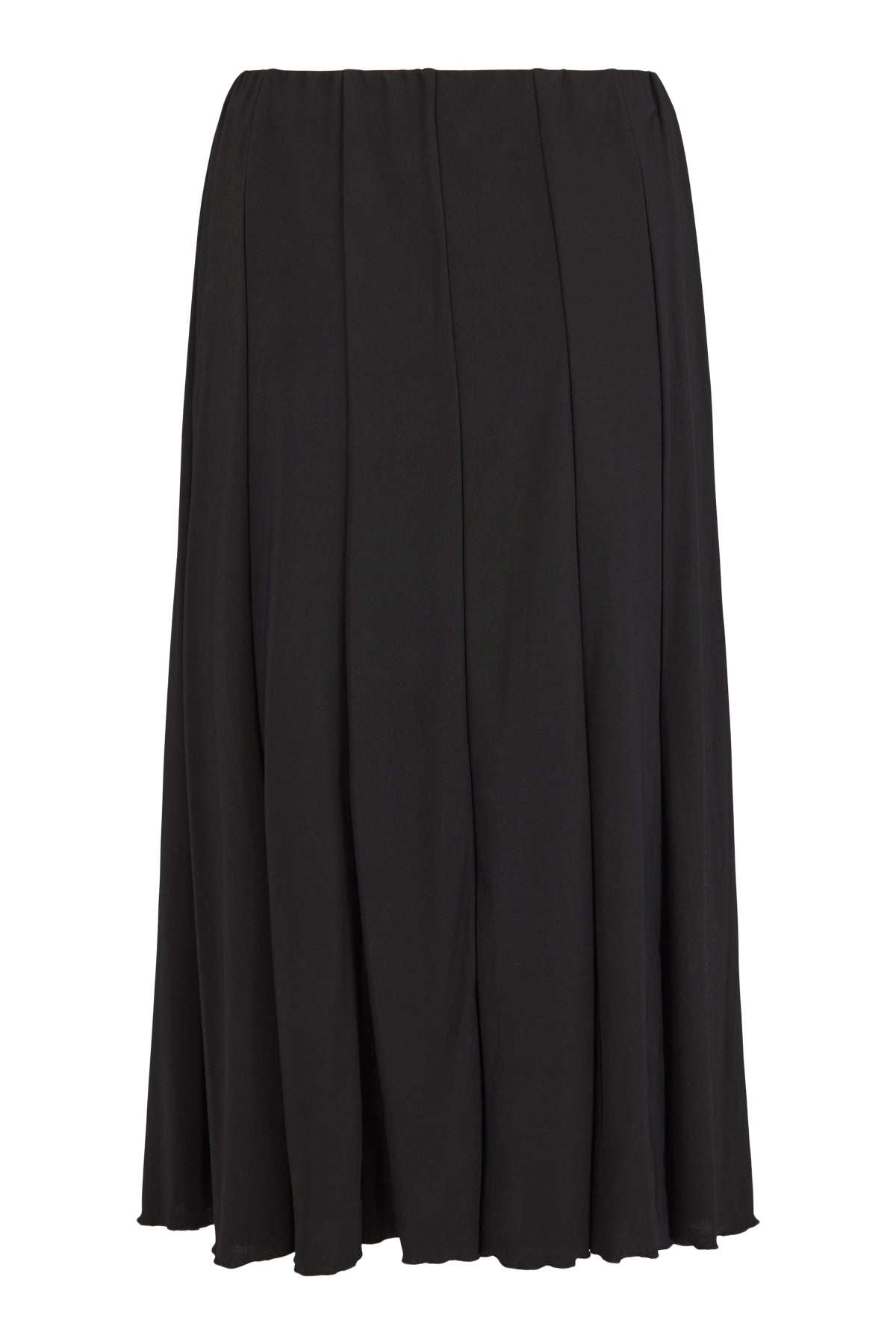 Bassini Mia sítt pils, með saumum niður og teygju í mitti, rúnað að neðan og með undirpilsi. Pils sem passar bæði spari og hversdags.