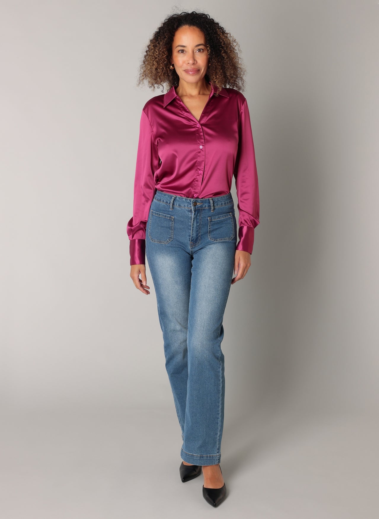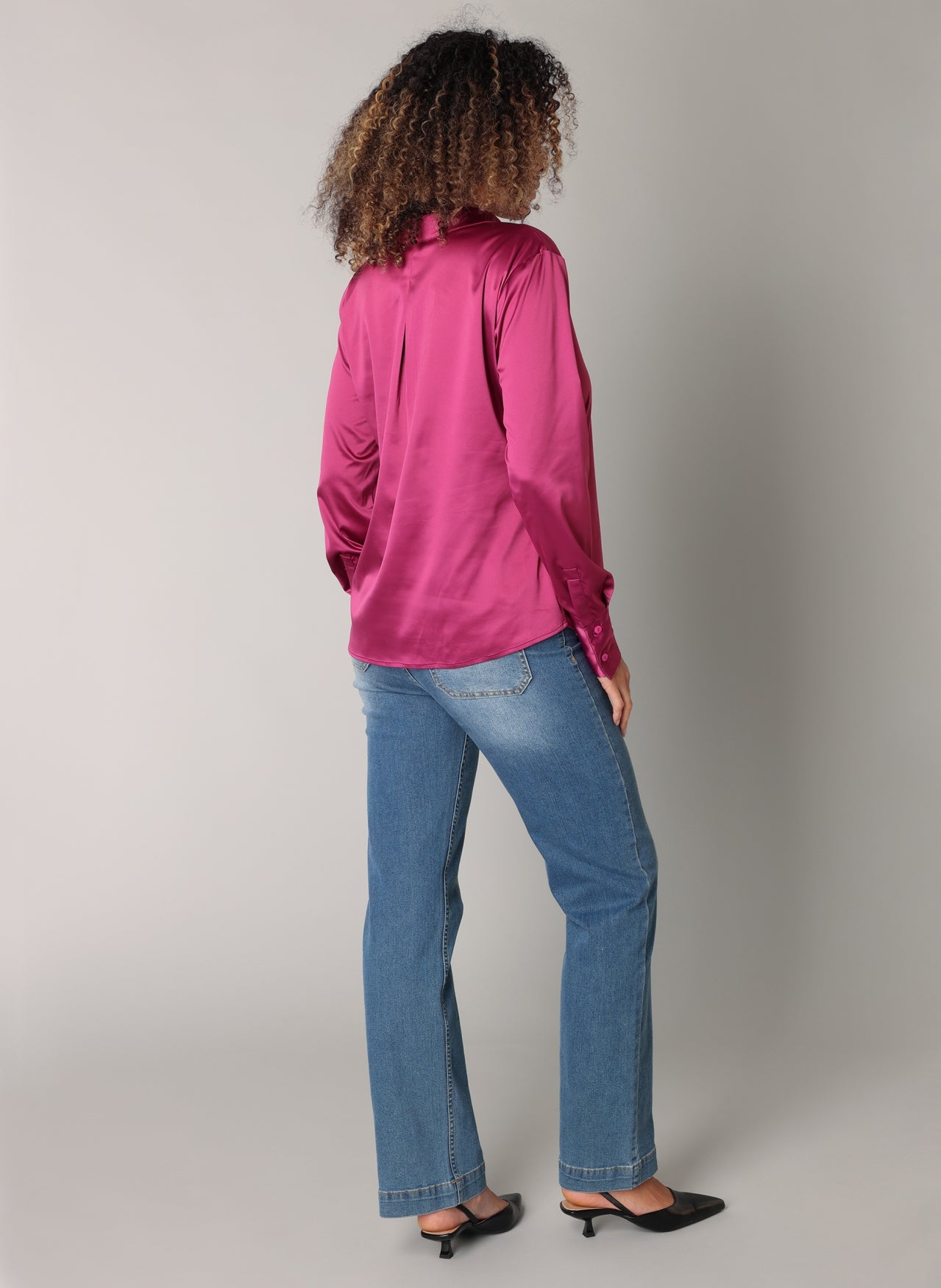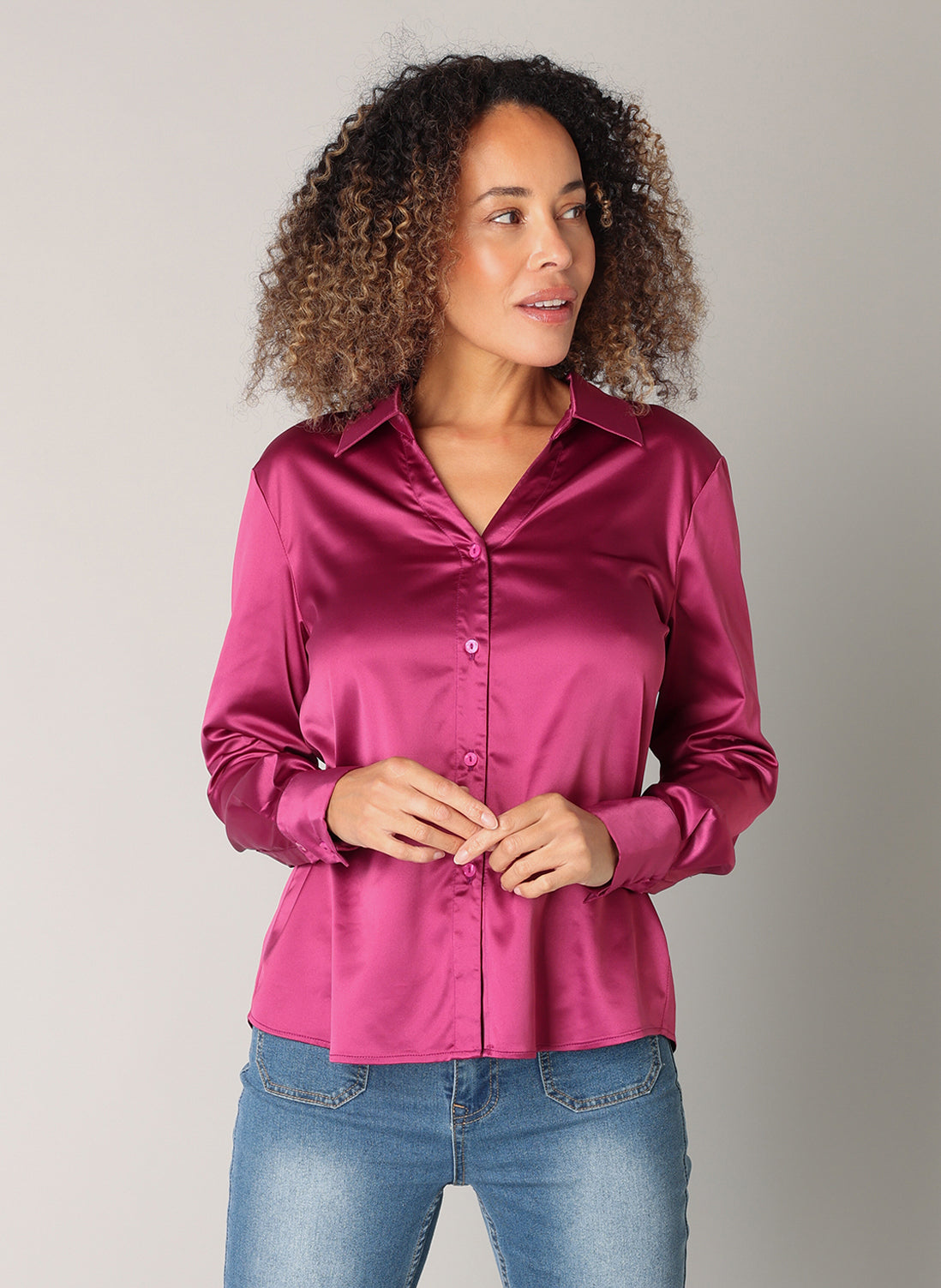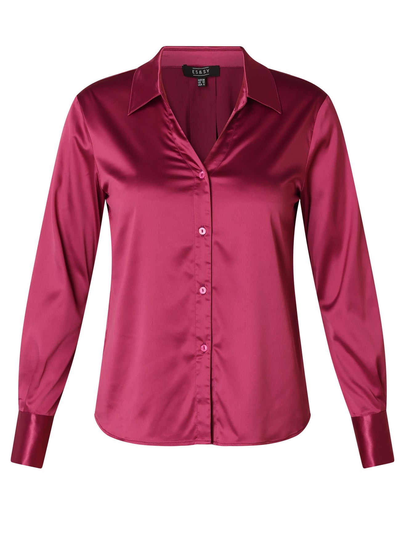 ES&SY - Ayliz smart og falleg satín skyrta. Hneppt að framan, langar ermar, V-hálsmál, skyrtukragi, tölur á ermum. Falleg skyrta sem passar vel með buxum eða pilsi hvort sem það er hversdags eða spari.
