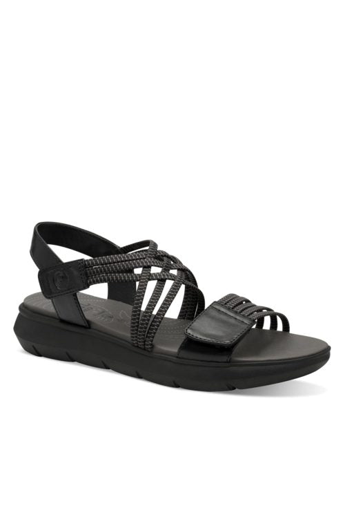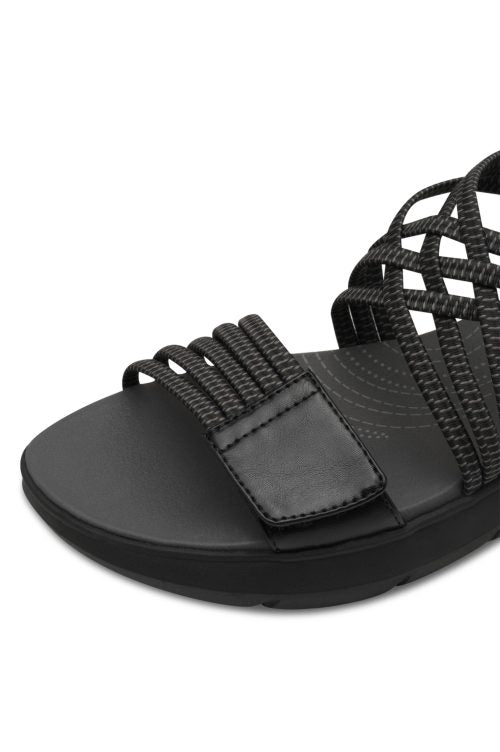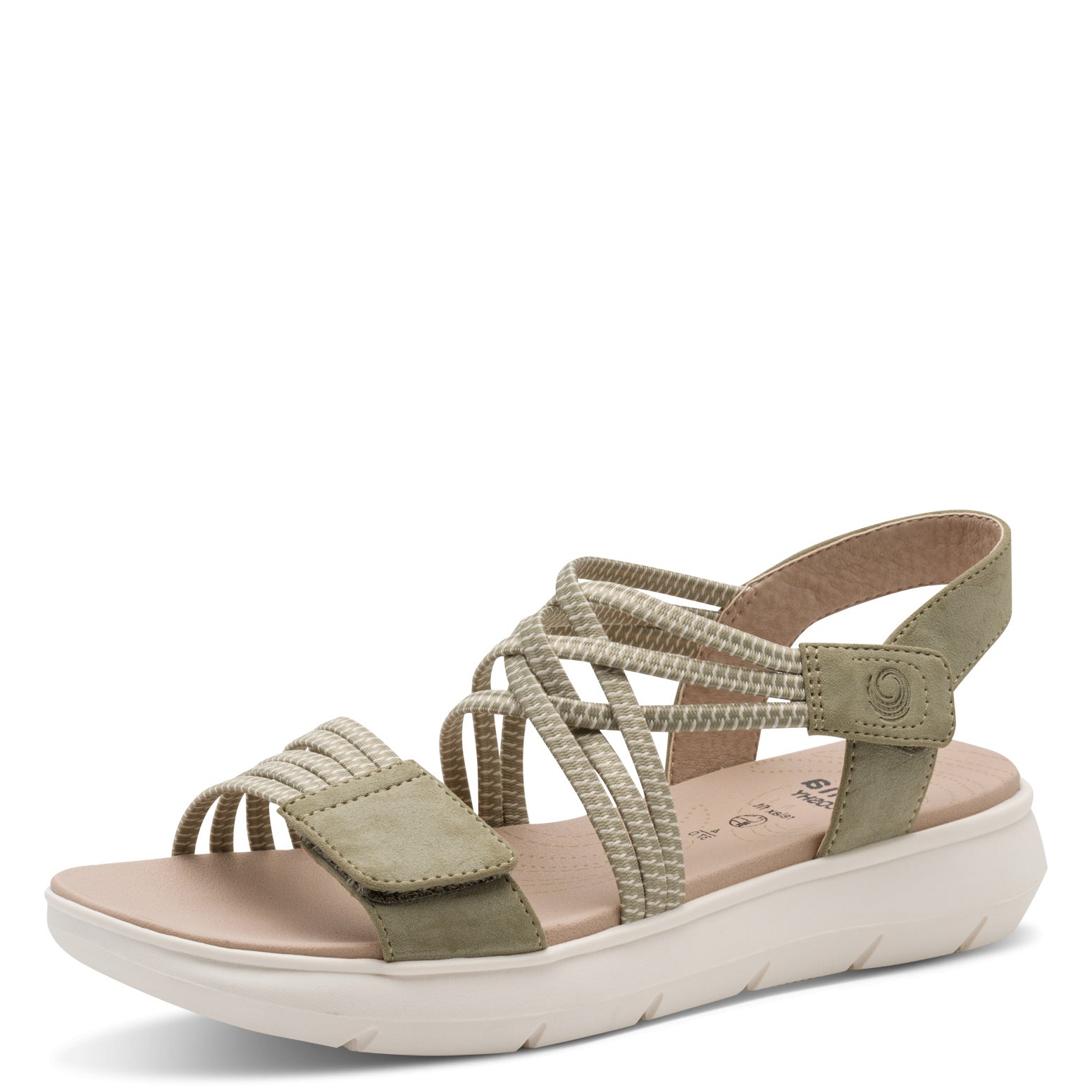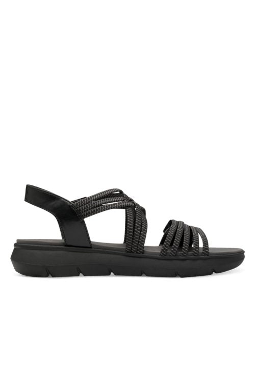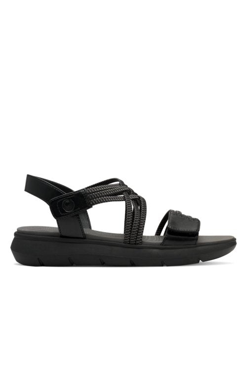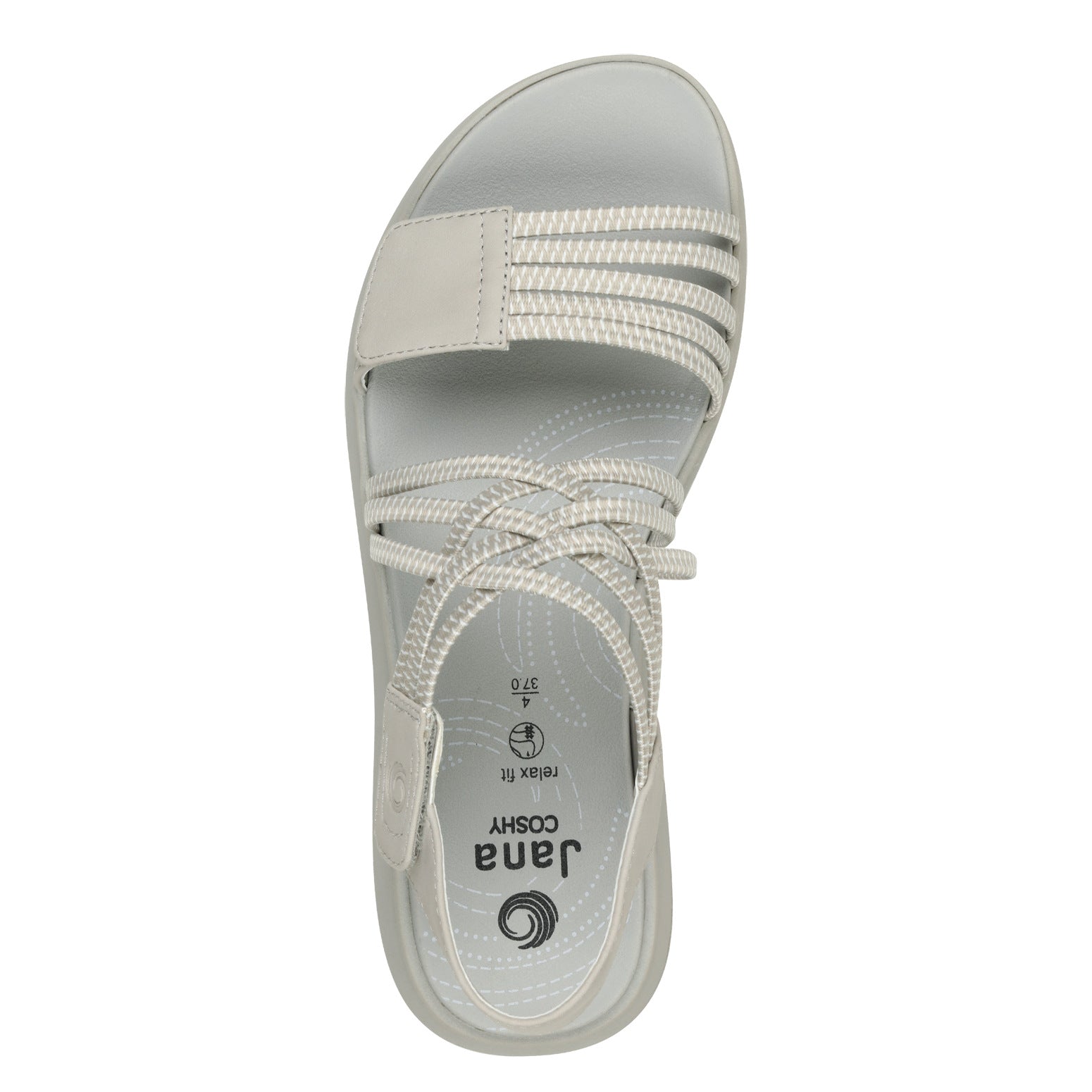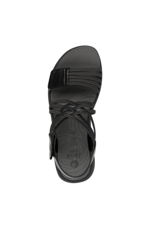 Jana Coshy - Mjúkir og þægilegir vegan sandalar. Þykkur sóli með örlítilli upphækkun, band um hæl, teygjubönd yfir rist og tær með frönskum rennilás, þannig að hægt er að stilla skóinn og aðlaga að fætinum eftir þörfum.