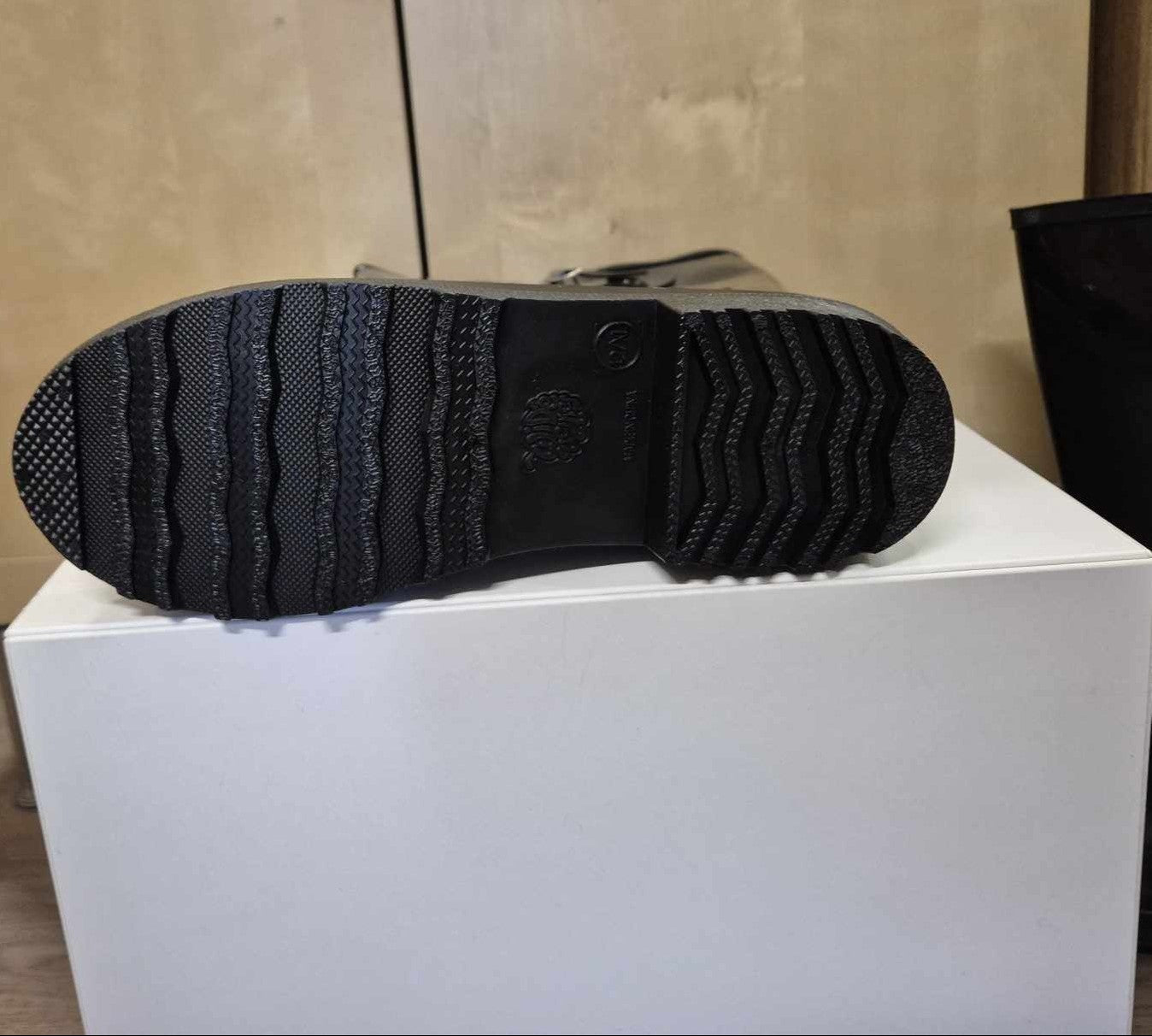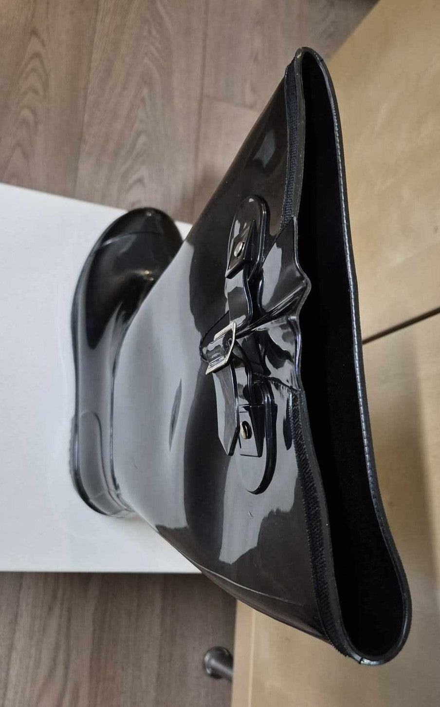 Rúnuð tá, vatnsheld, 1,5 cm hæll, laust innlegg, smart ól efst með skrauti, frekar grófur botn, ófóðruð.