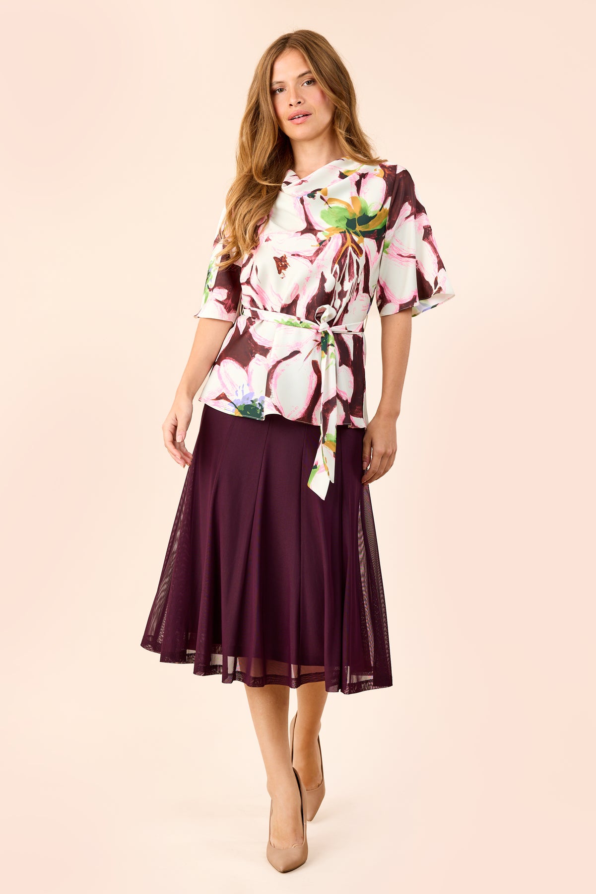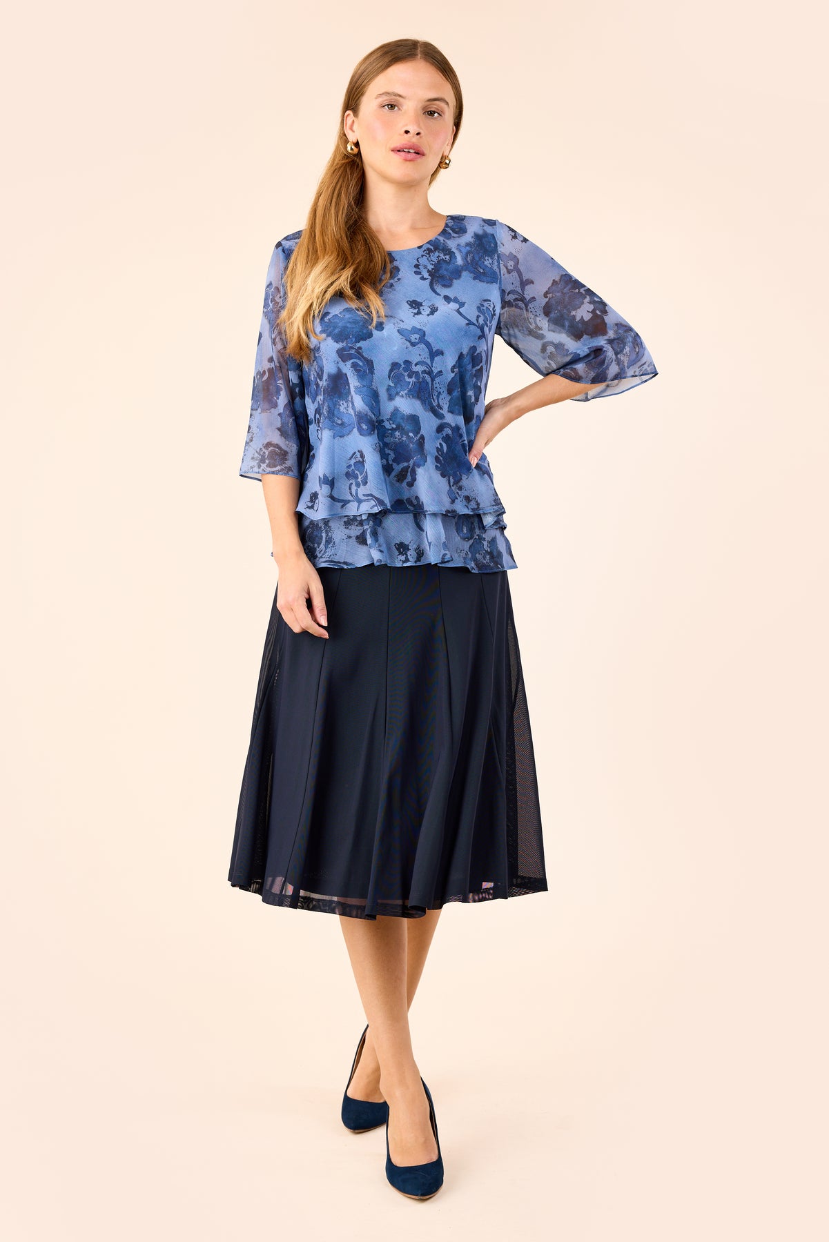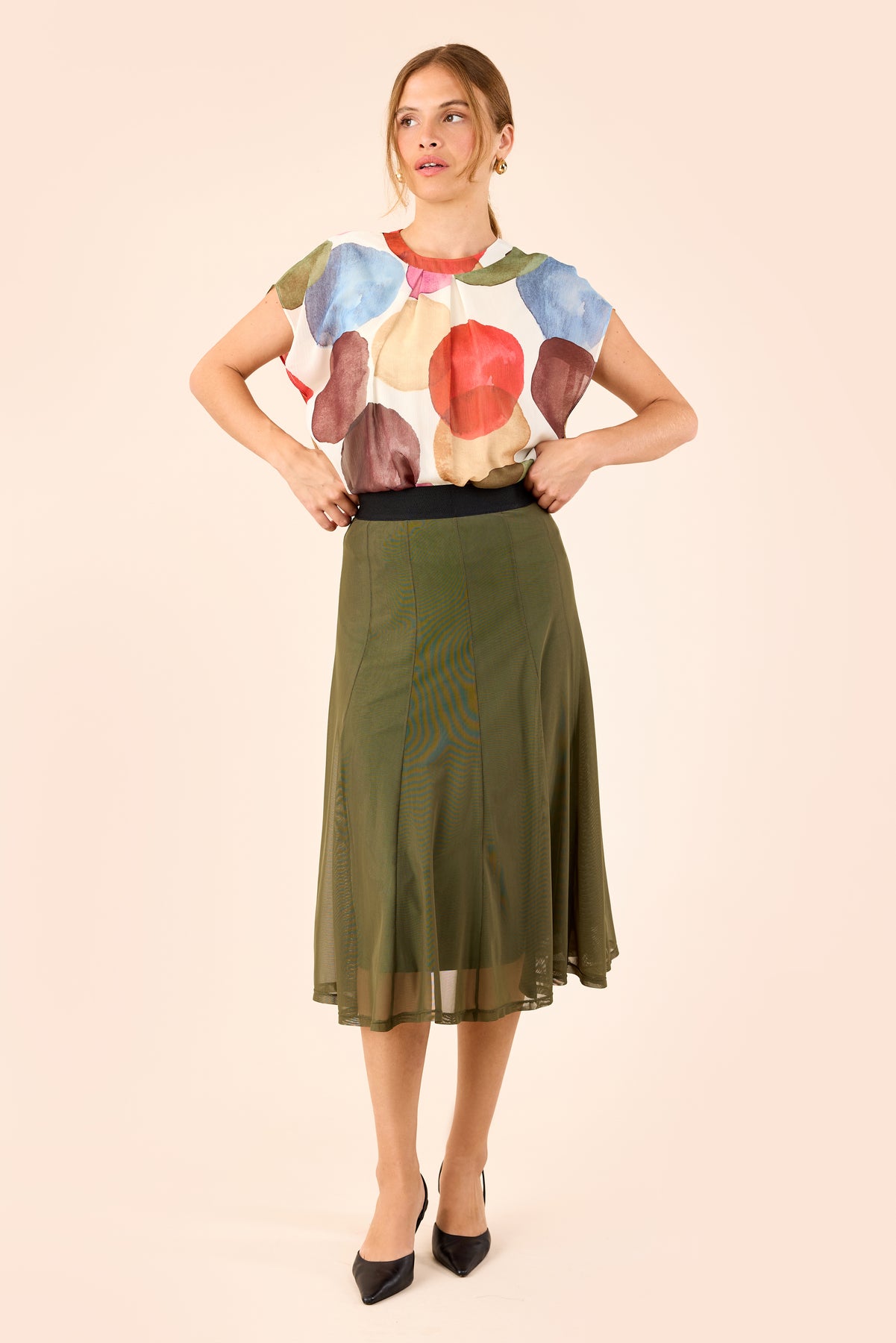 Molly Jo - Gianna pils, með saumum niður og breiðri teygju í mitti, rúnað að neðan og með undirpilsi. Pils sem passar bæði spari og hversdags.