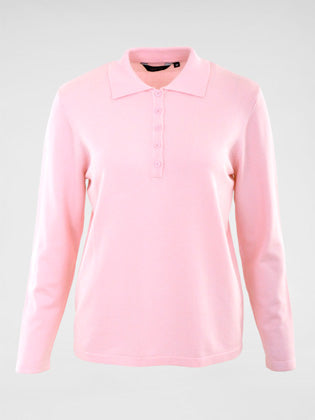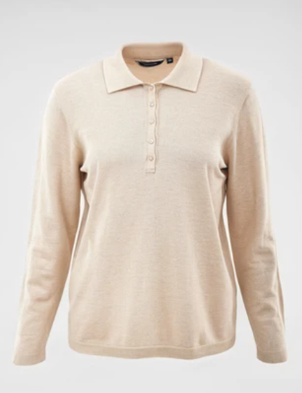 Navigazione - Nadia flottur og þægilegur langerma pólóbolur. Skyrtukragi, hnepptur hálfa leið niður, langar ermar, mjúkt og þægilegt efni. Passar vel við allar buxur eða pils, hentar vel bæði hversdags- og spari.