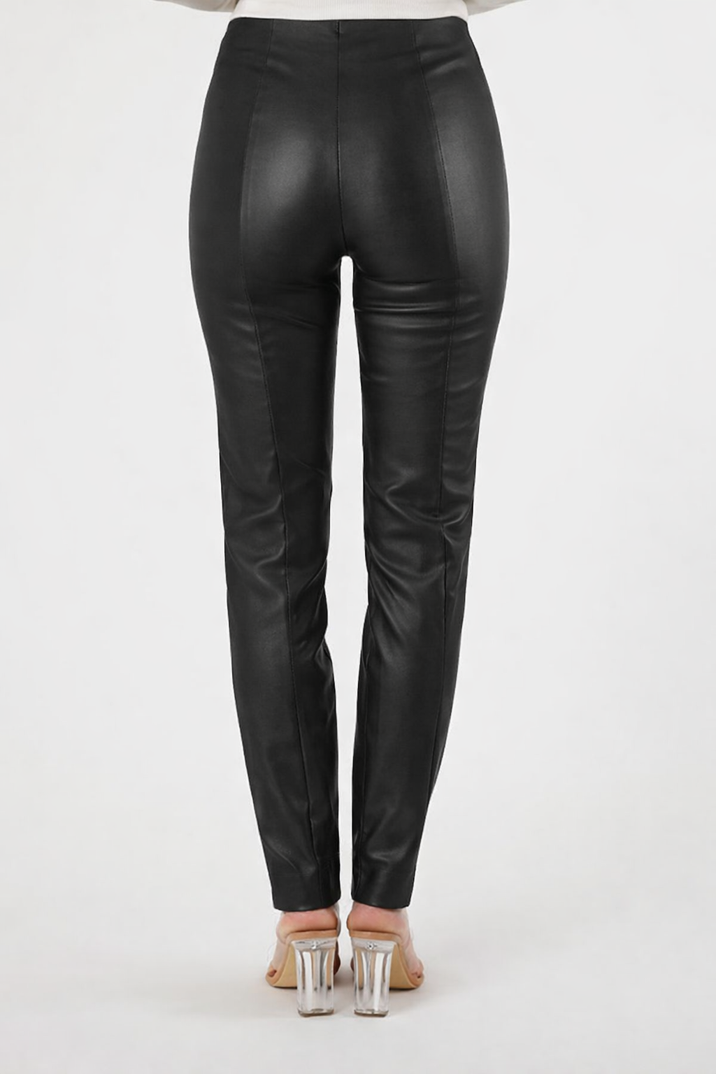 Robell Marie - flottar pleðurbuxur með teygju í mittið, rennilásaklauf að framan, en það er bara fyrir útlitið. Beinar skálmar með sauma niður skálmar að aftan sem gefur skemmtilegt og sportlegt útlit. Flottar pleðurbuxur sem sitja vel, góðar stærðir og mikið strech í efni.