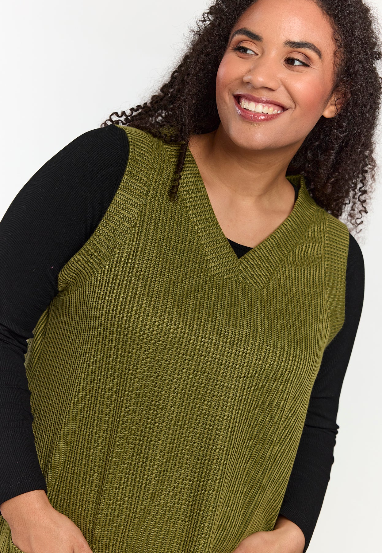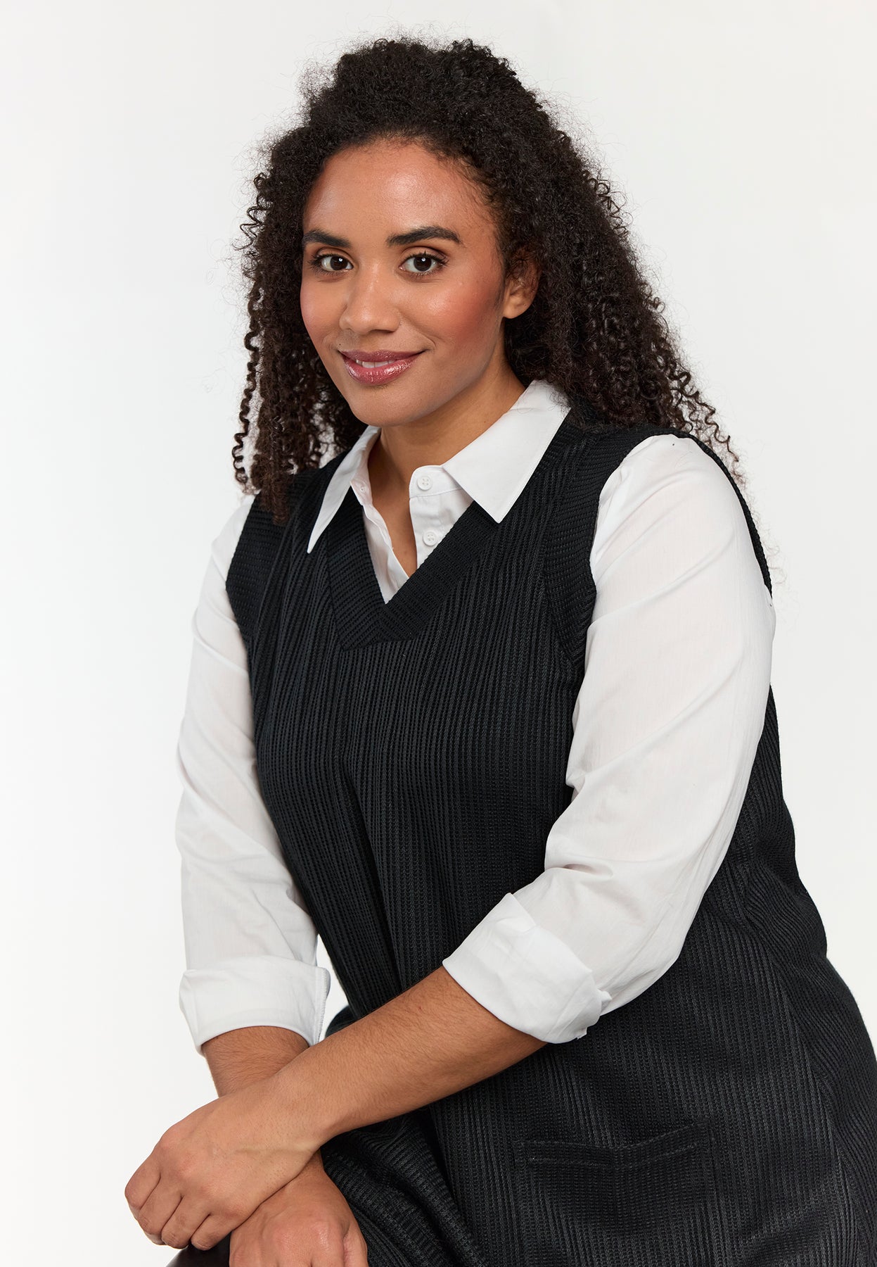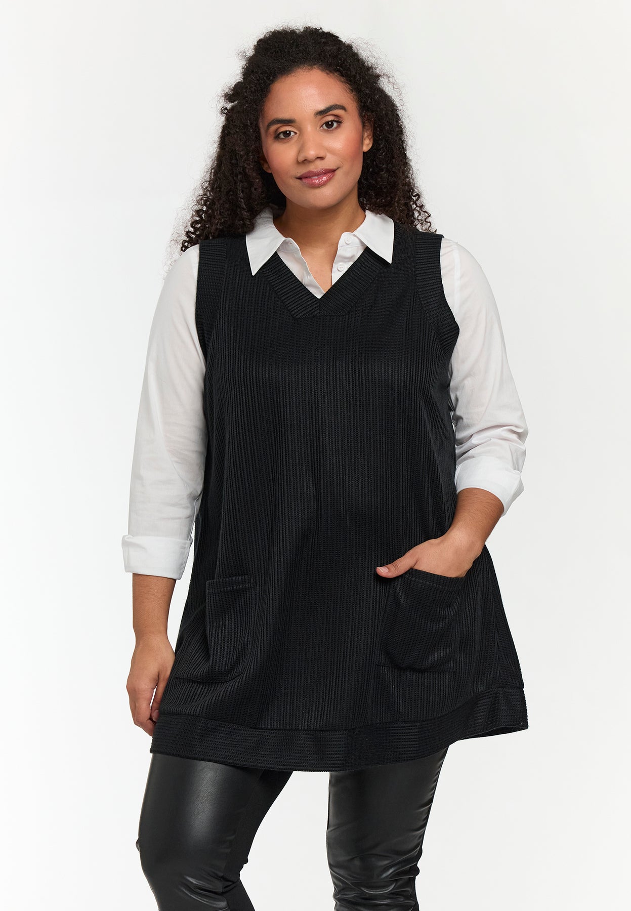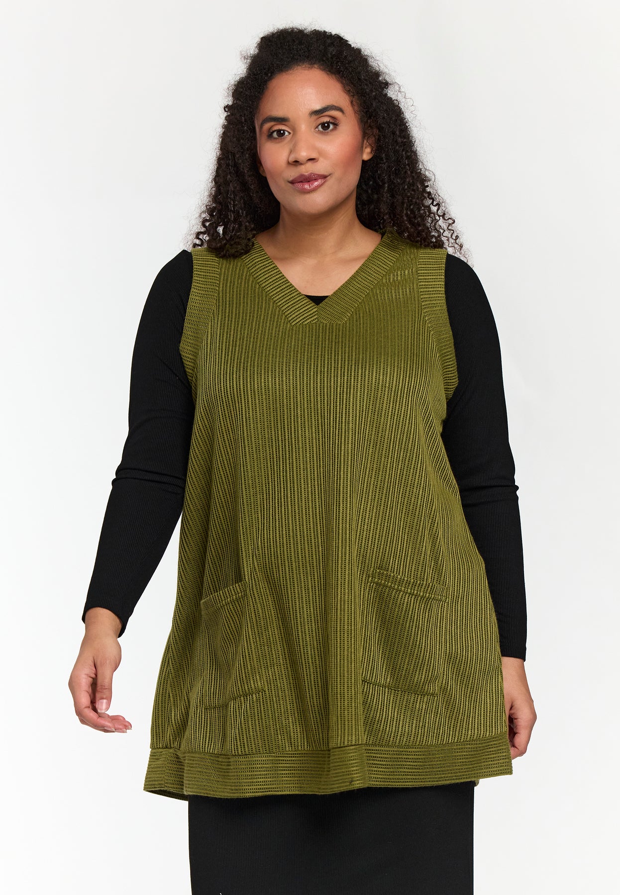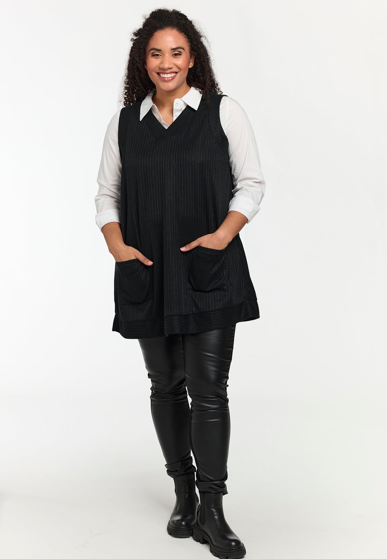 Studio - Lily flott og sparilegt vesti. V-hálsmál, góðir vasar að framan, A-snið. Flott yfir skyrtur eða boli og hægt að nota spari eða hversdags.