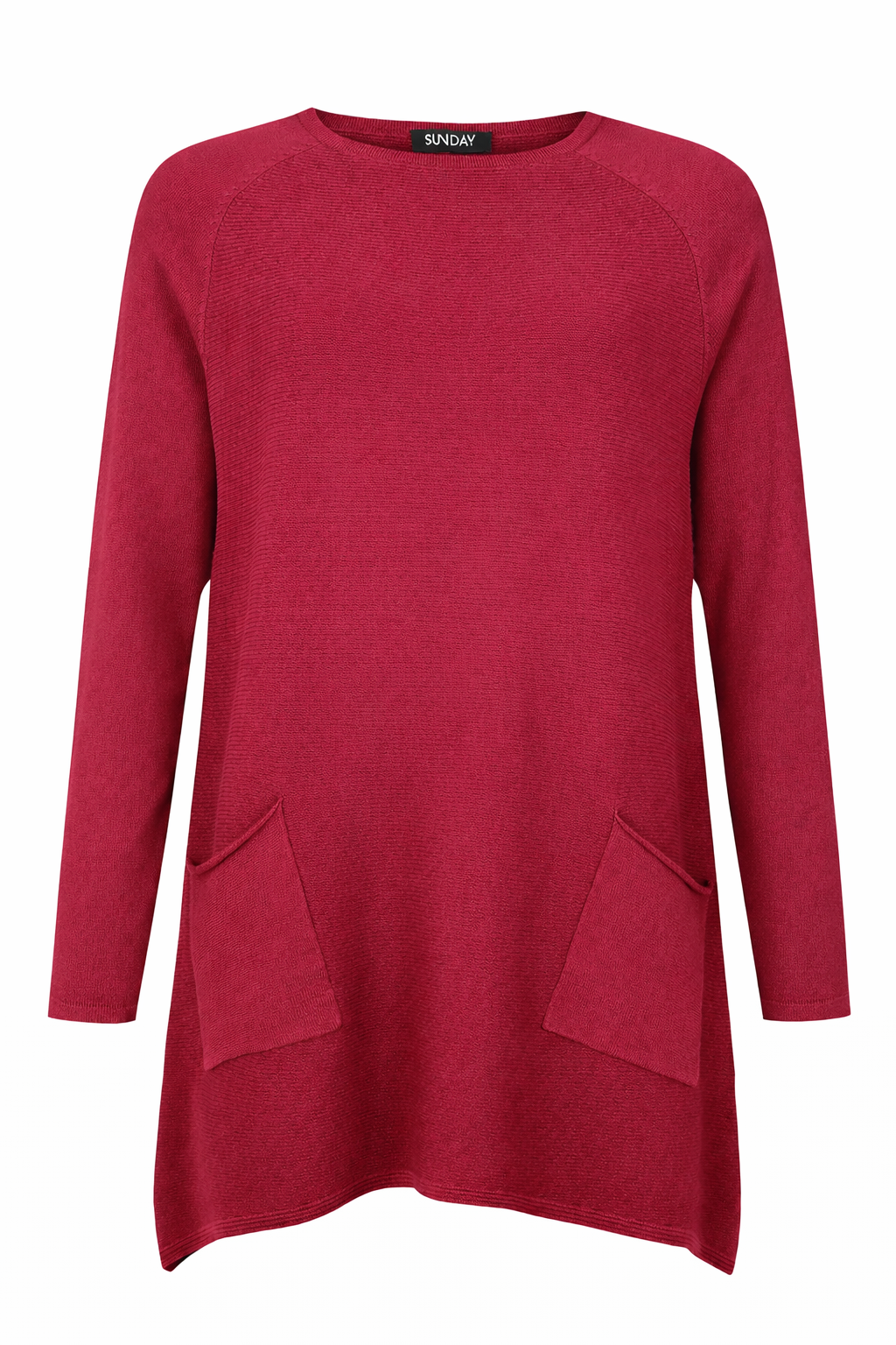 Sunday - Flott peysa með rúnuðu hálsmáli, laskermum og góðu A-sniði, mjúkt og þægilegt efni. Rifflað efni að framan og aftan og opnir vasar að framan.