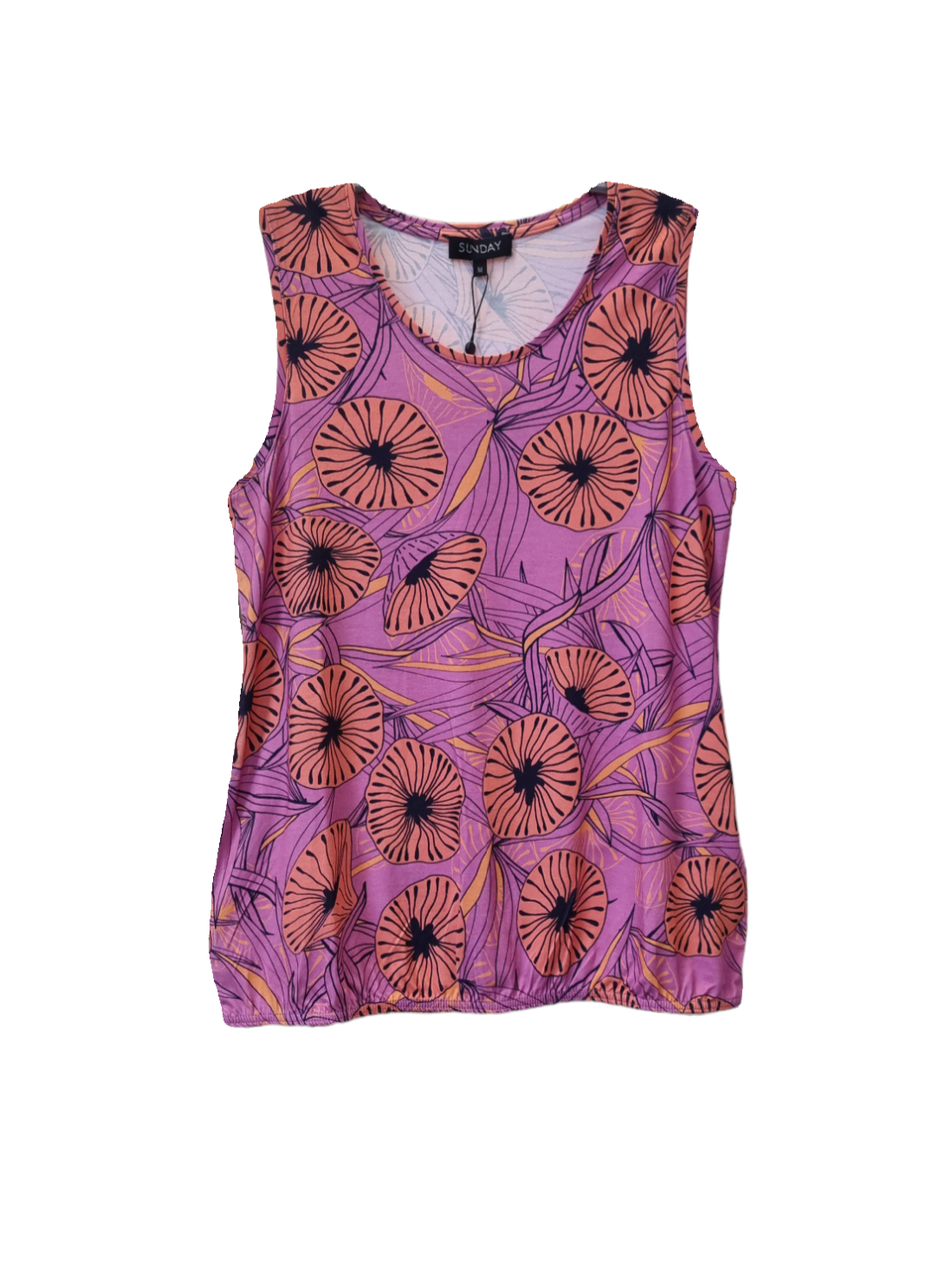 Sunday - Peony - léttur mynstraður hlýrabolur.  Rúnað hálsmál og teygja neðst.