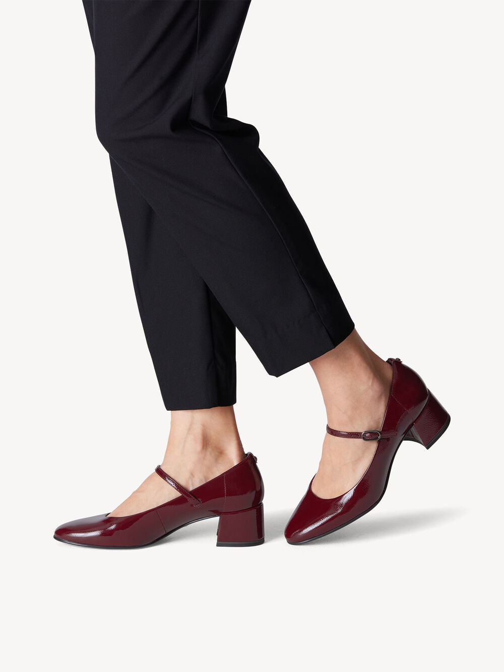 Tamaris - flottir lakk hælaskór með stillanlegu bandi yfir rist og 4,5 cm hæll.