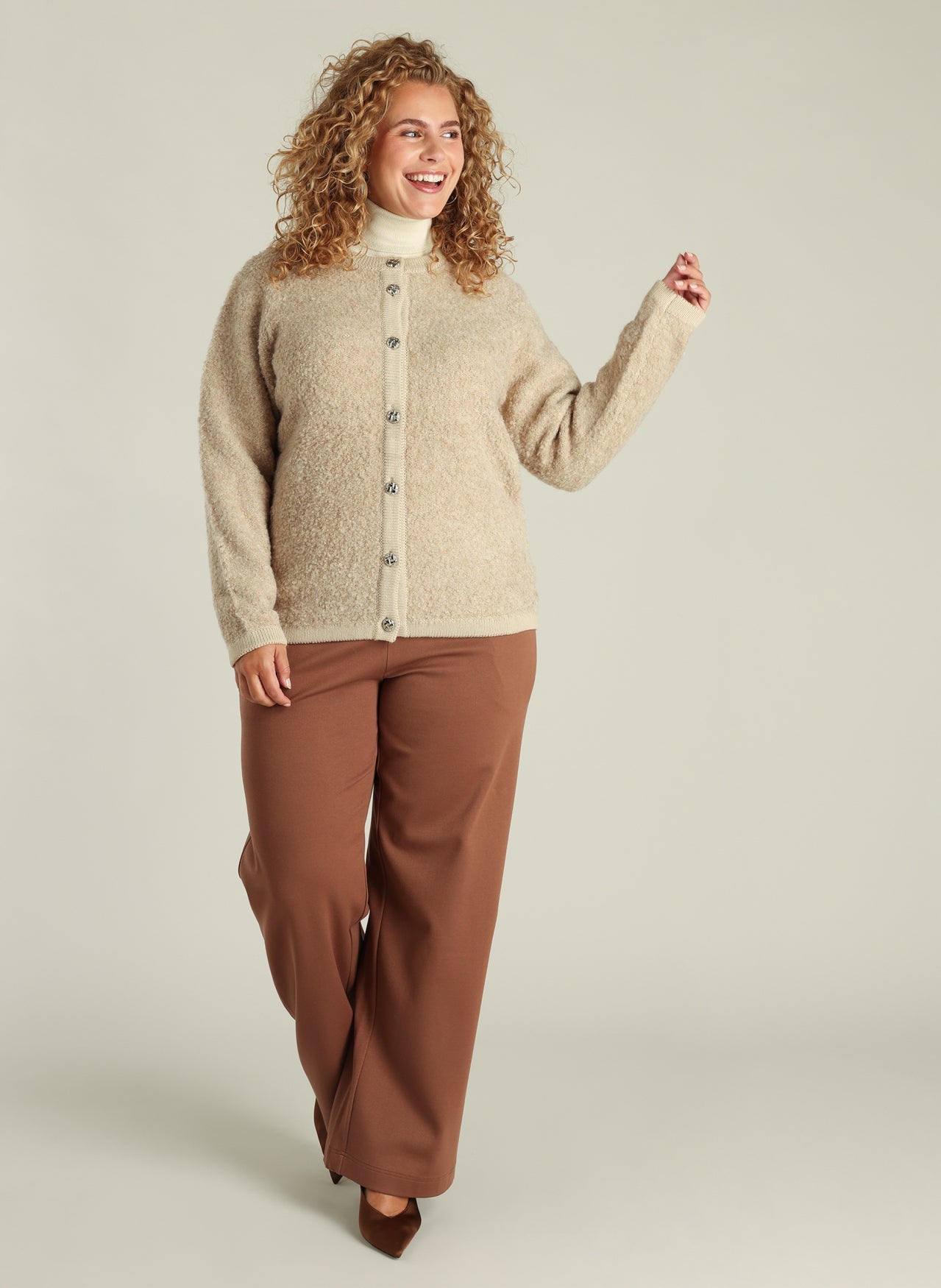 Yest Curve - Genny flott og þægileg peysa. Hneppt að framan, rúnað hálsmál, langar ermar. Flott bæði sem hversdagspeysa sem passar vel við gallabuxur og treggings, hægt að nota aðeins meira fínt líka, með bara hverju sem er.