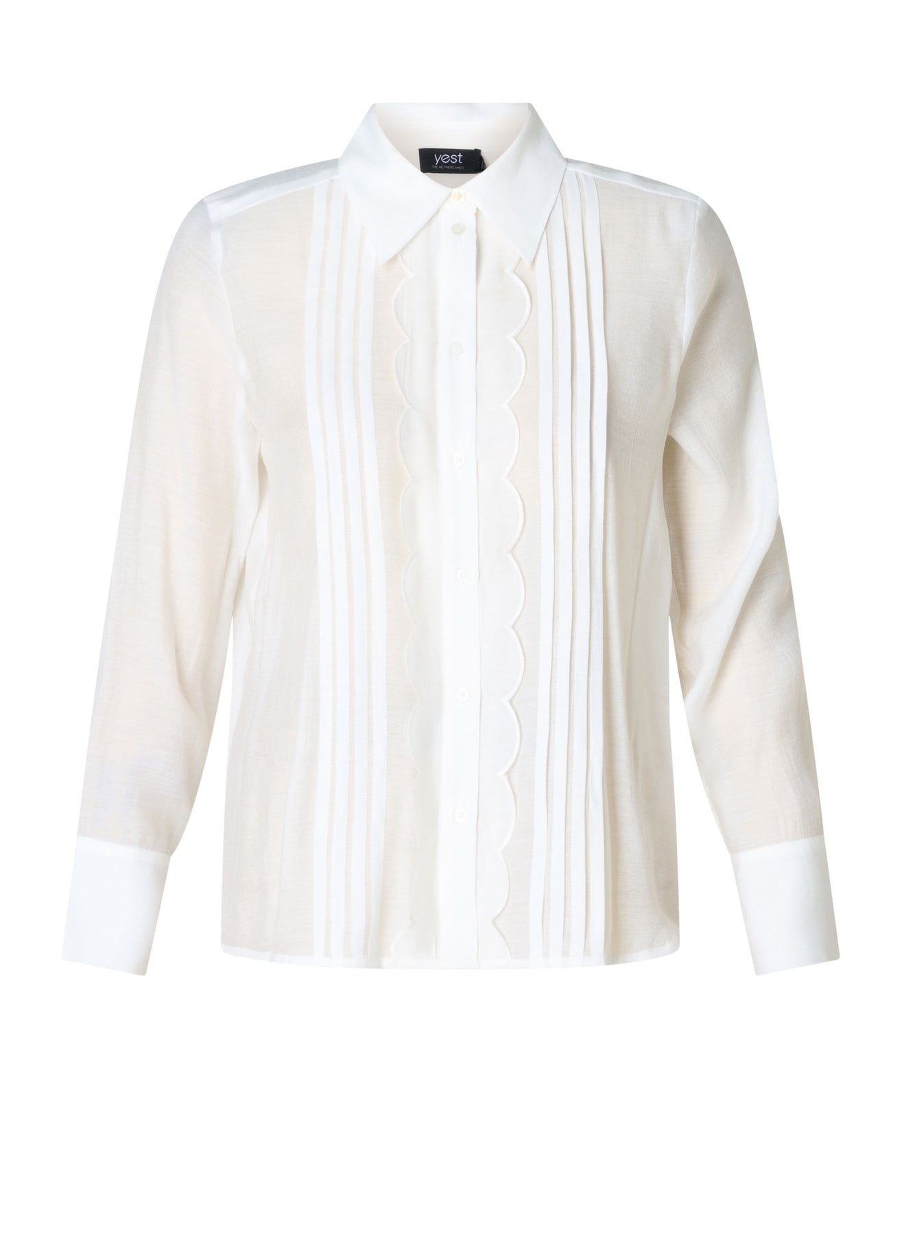 Yesta - Halina smart skyrta. Hneppt alla leið niður að framan, skyrtukragi, langar ermar, langar ermar með tölu, hálfgegnsætt efni. Passar vel við gallabuxur og treggings, einnig hægt að nota aðeins meira fínt líka, með bara hverju sem er.