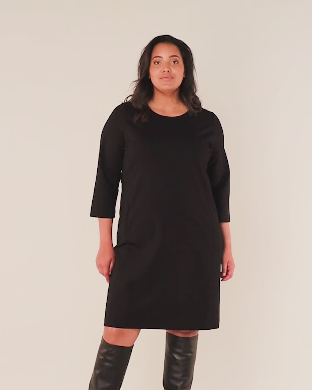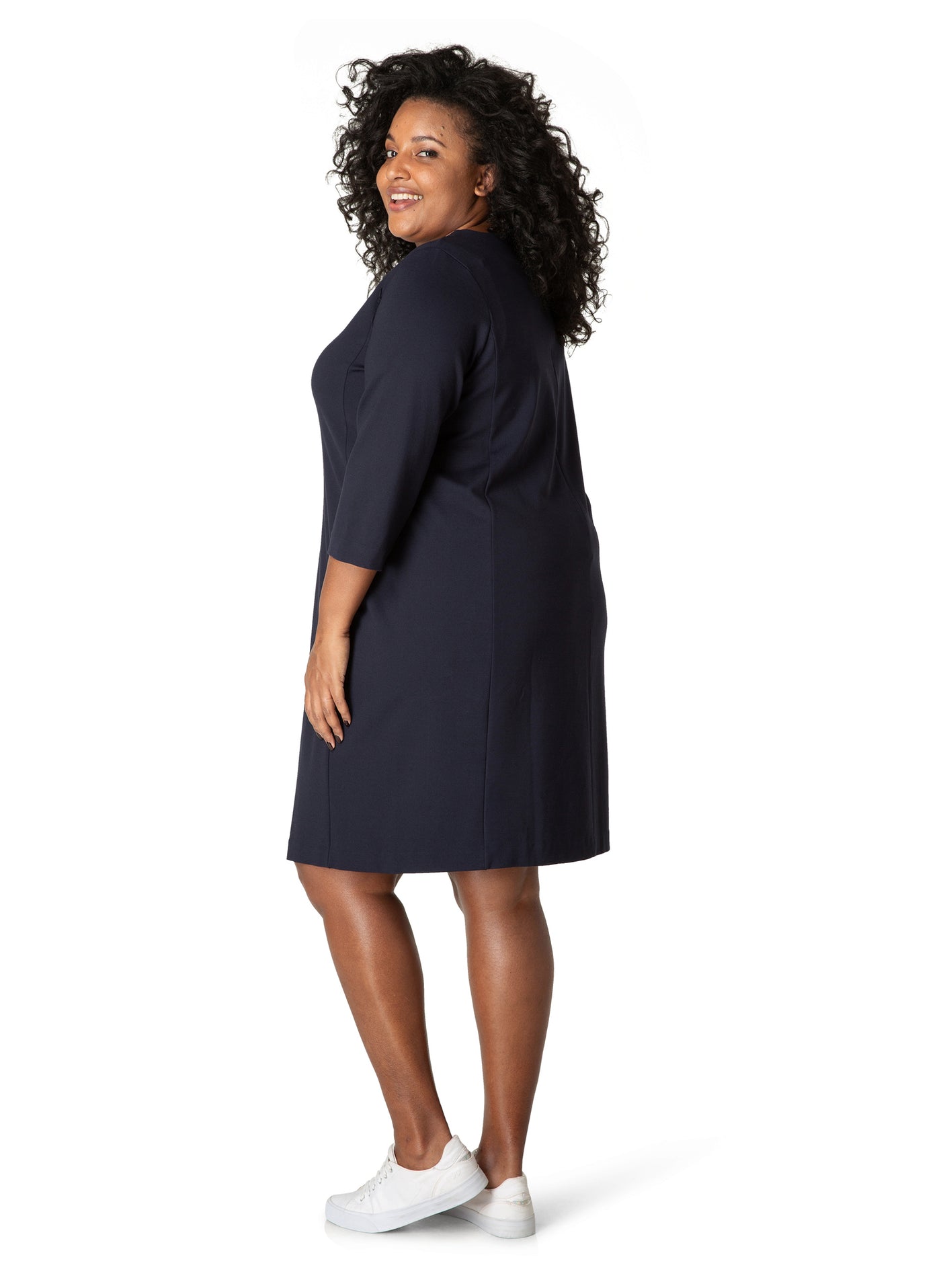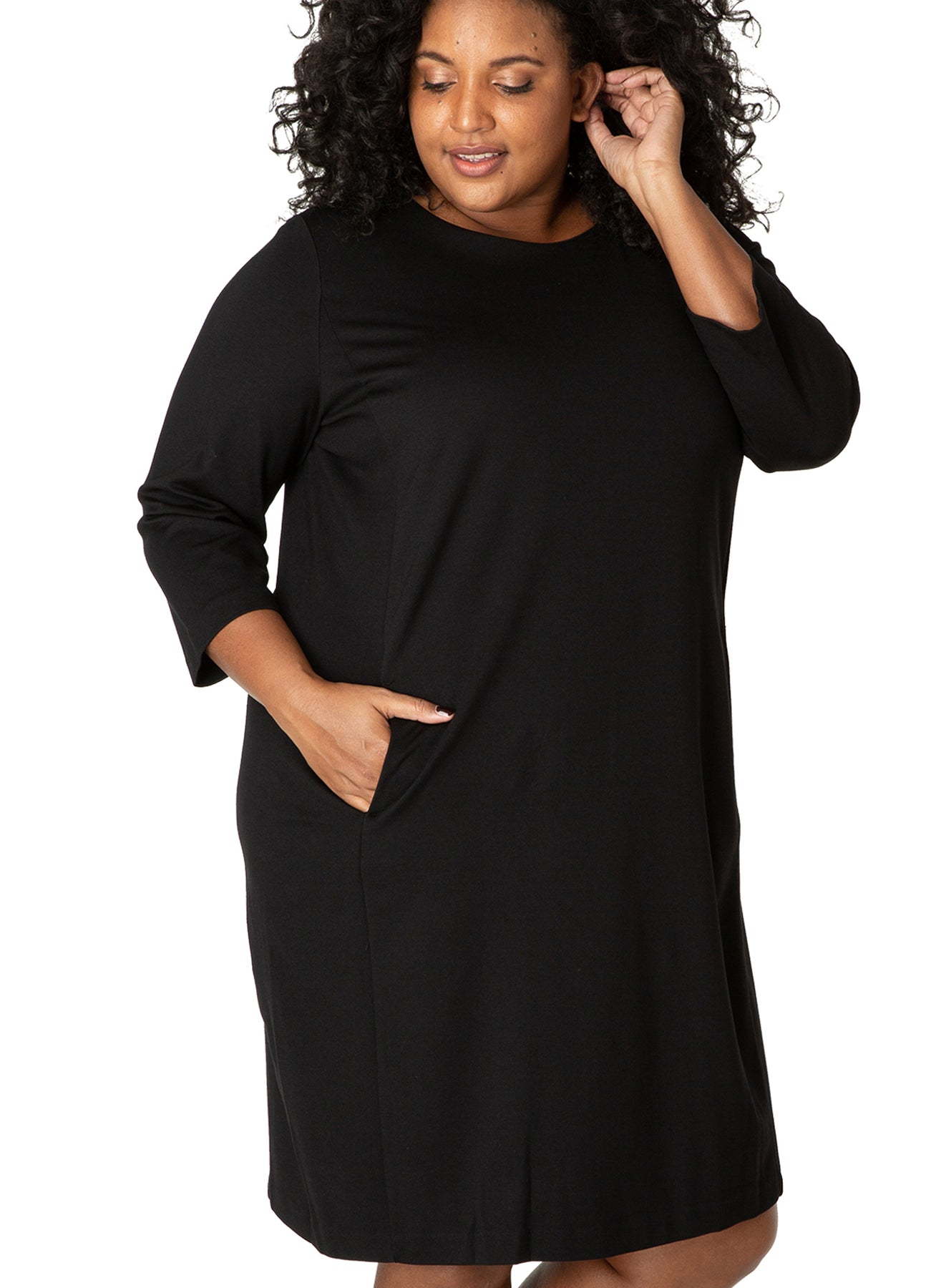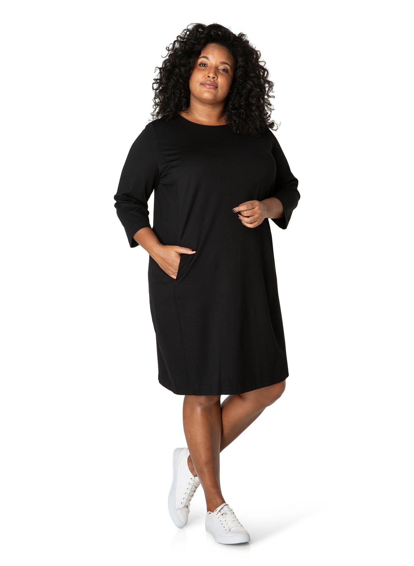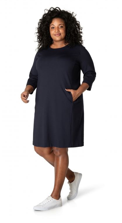 YestA - Base Level Curvy, látlaus og þægilegur kjóll með vösum að framan og rennilás í baki.