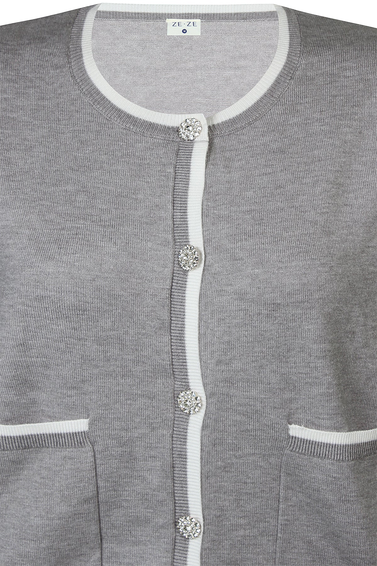 Ze-Ze - Ciku falleg og sparileg hneppt peysa. Langar ermar með stroffi neðst, rúnað hálsmál, hneppt alla leið niður að framan, góðir vasar að framan. Sparileg peysa sem gengur við allt, hægt að nota yfir boli og kjóla.