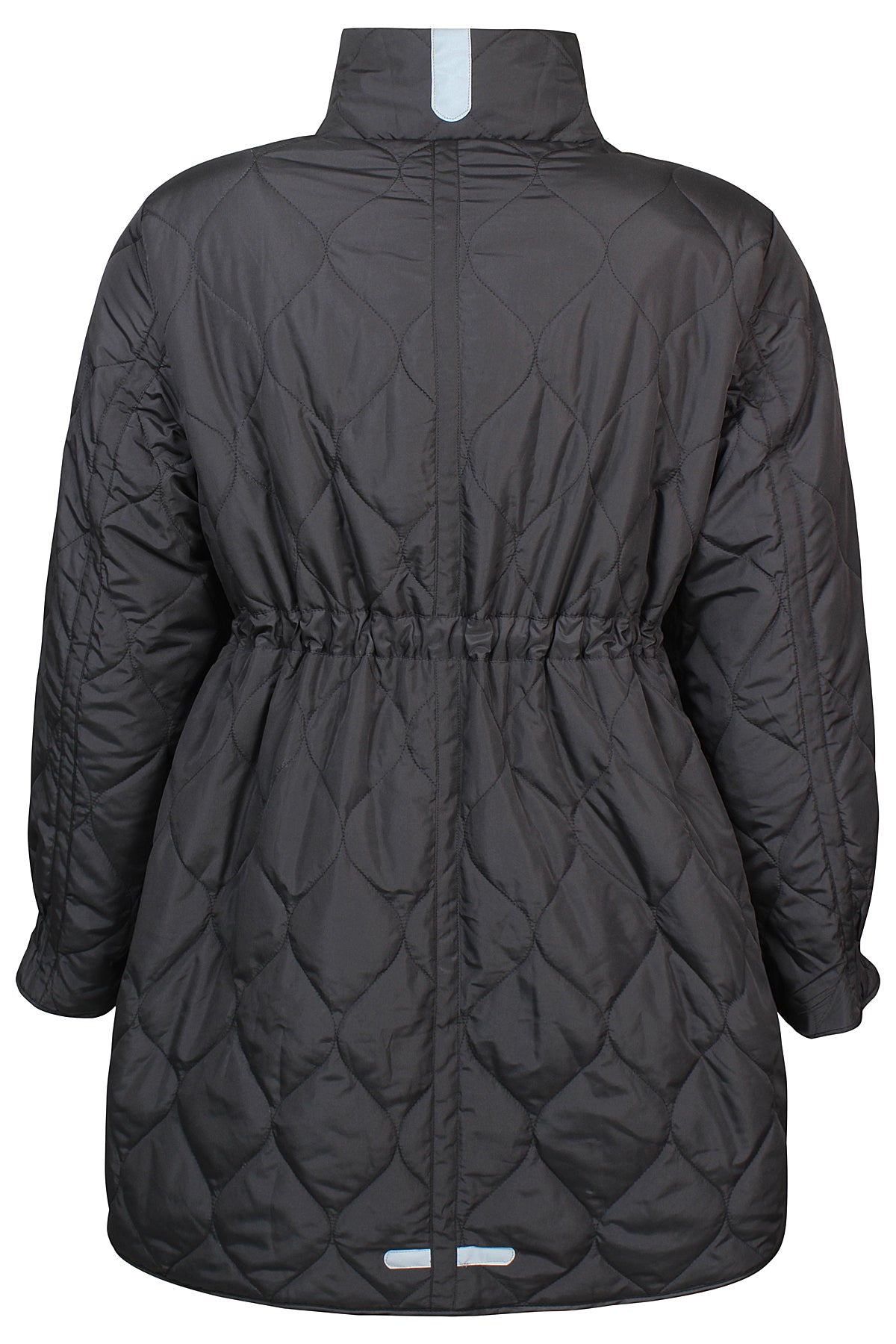 Zhenzi - Danna hálfsíð úlpa. Teygja í mitti, tvöfaldur rennilás og smellur að framan, hár kragi, teygja og stroff fremst á ermum, góðir vasar að framan.