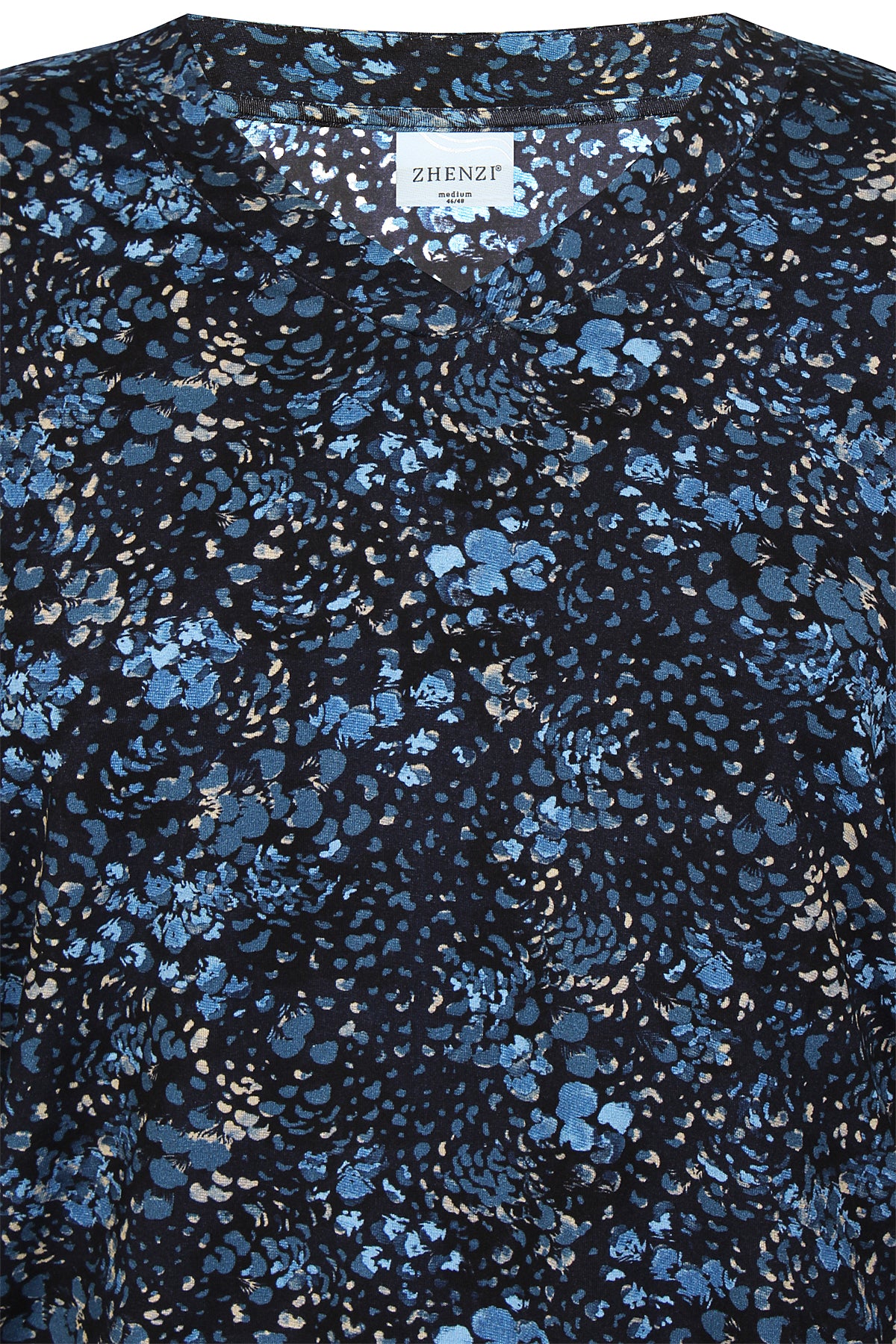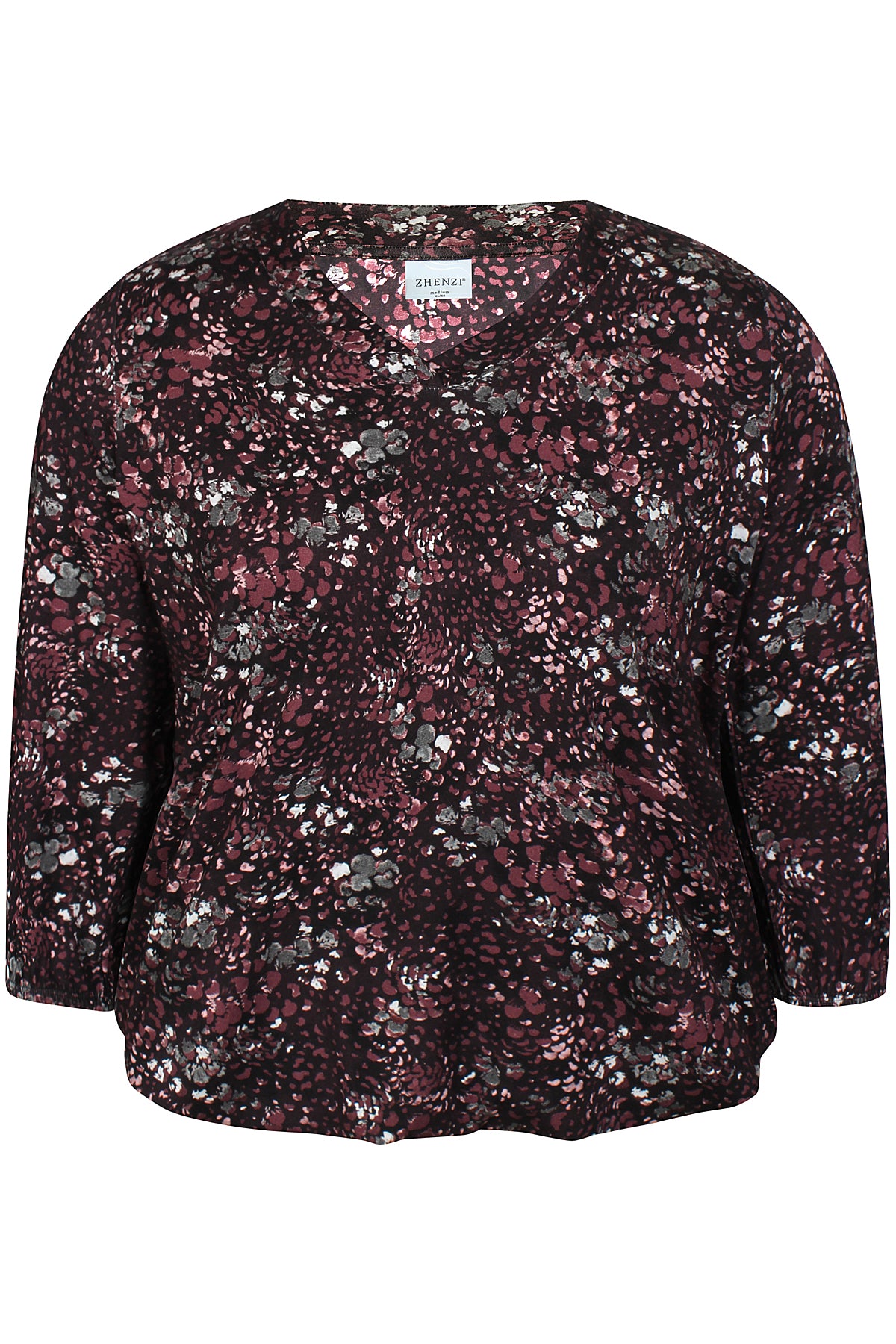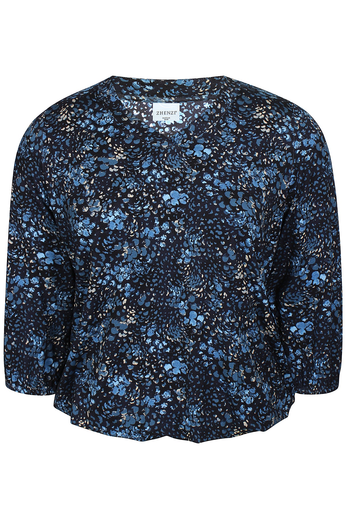 Zhenzi - Sylva sæt blússa með fallegu mynstri og teygju neðst. V-hálsmál og kvartermar með teygju. Flott bæði sem hversdags og betri flík og passar vel með hverju sem er.