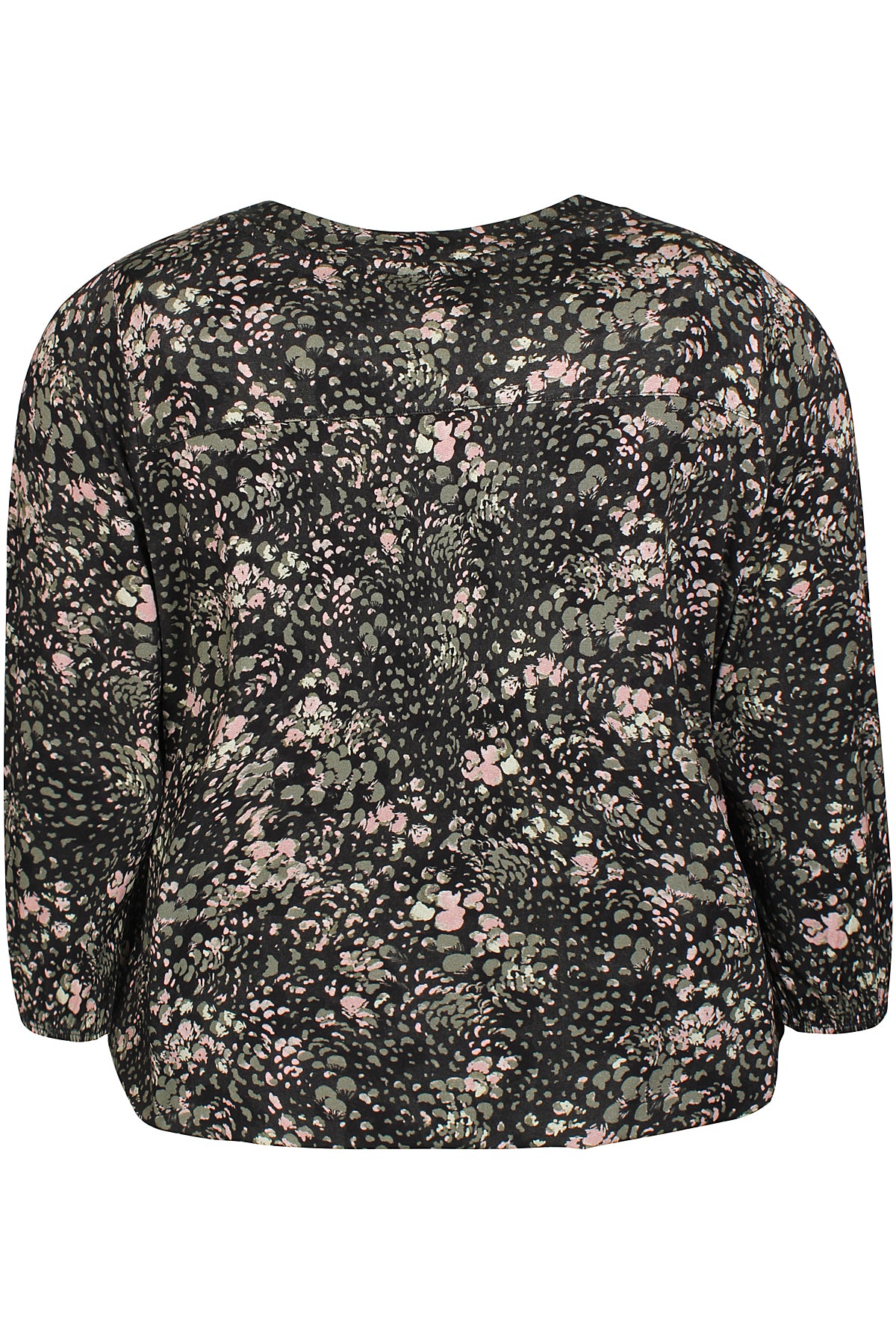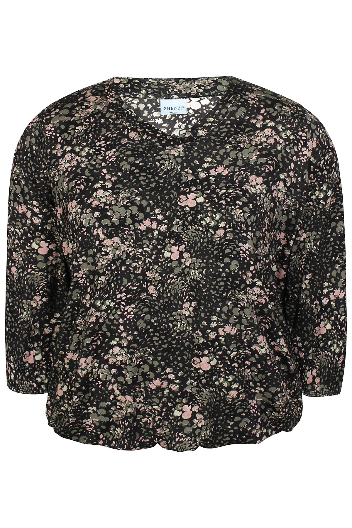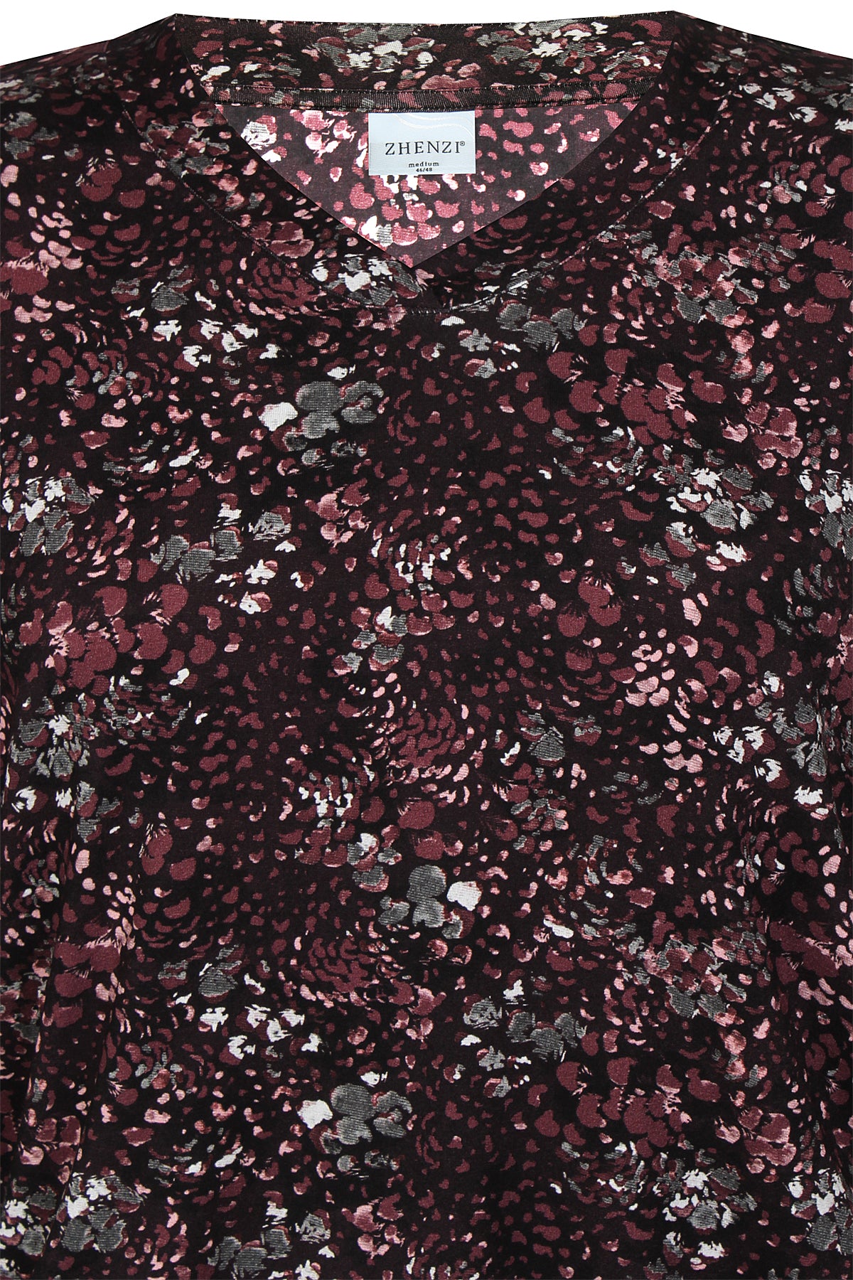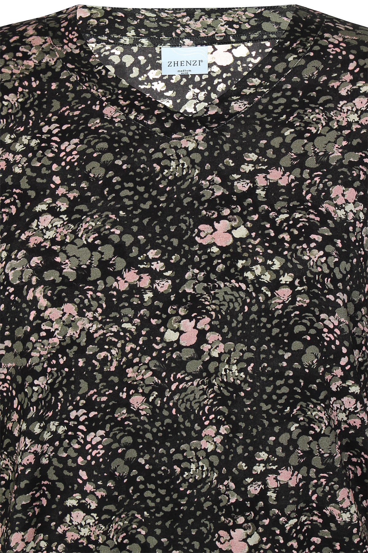 Zhenzi - Sylva sæt blússa með fallegu mynstri og teygju neðst. V-hálsmál og kvartermar með teygju. Flott bæði sem hversdags og betri flík og passar vel með hverju sem er.