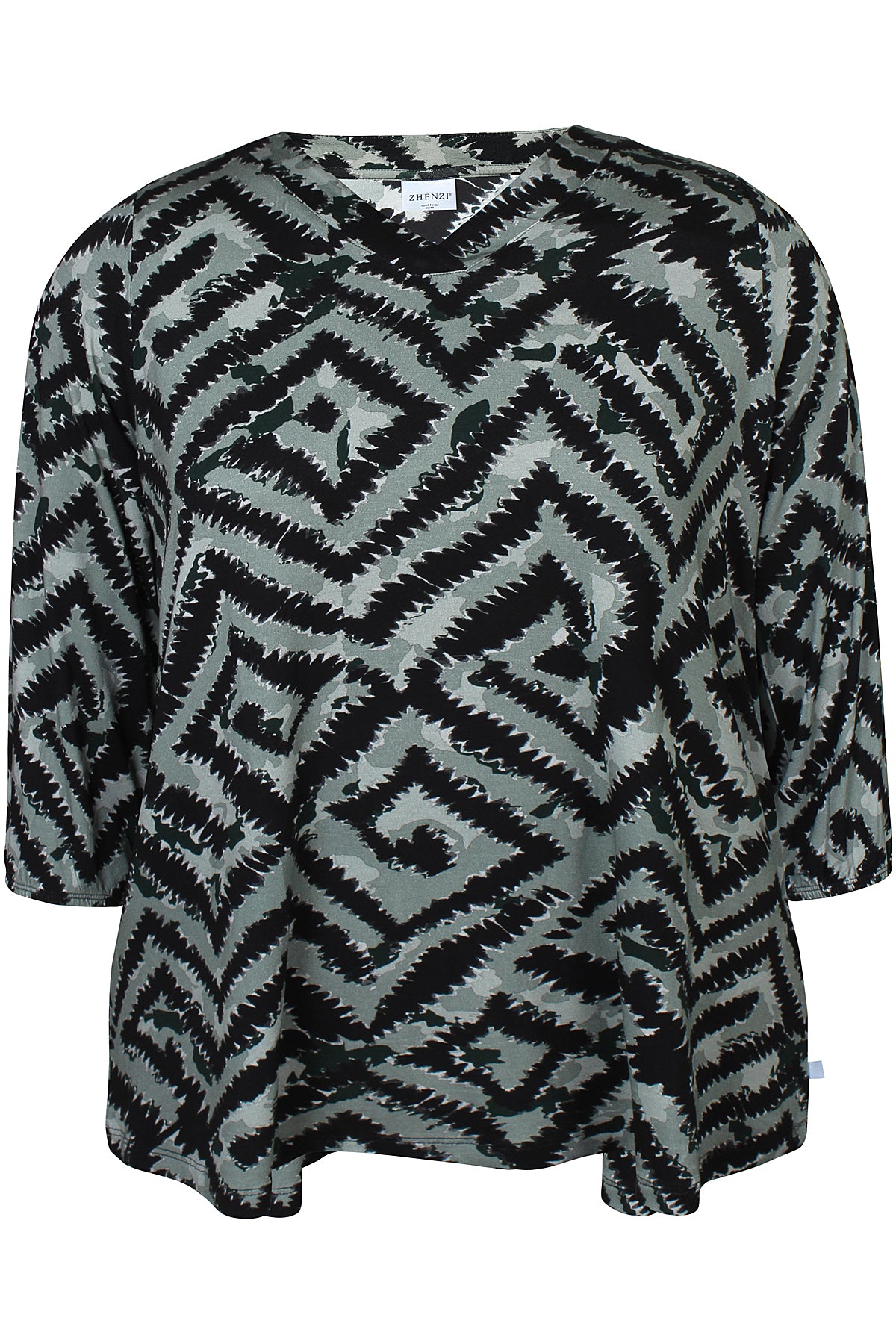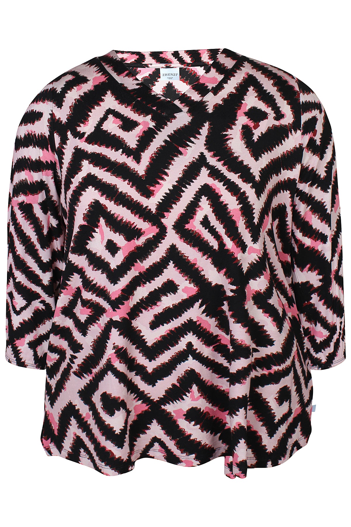 Zhenzi - Sylva sæt blússa með fallegu mynstri. V-hálsmál og kvartermar með teygju neðst. Flott bæði sem hversdags og betri flík og passar vel með hverju sem er.