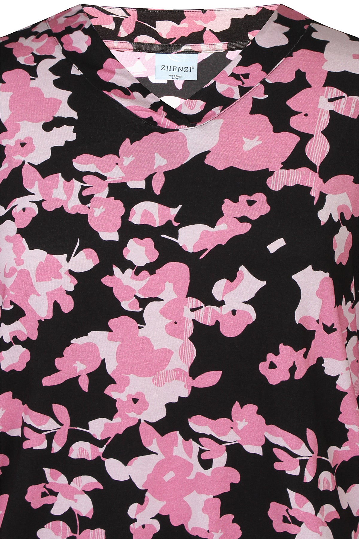 Zhenzi - Sylva sæt blússa með fallegu blómamynstri. V-hálsmál og kvartermar með teygju neðst. Flott bæði sem hversdags og betri flík og passar vel með hverju sem er.