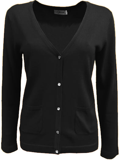 No Secret - Kaiya flott og sparileg hneppt peysa með bling tölum. V-hálsmál, langar ermar og góðir vasar að framan. Flott bæði sem hversdagspeysa sem passar vel við gallabuxur og treggings, hægt að nota aðeins meira fínt líka, með bara hverju sem er.