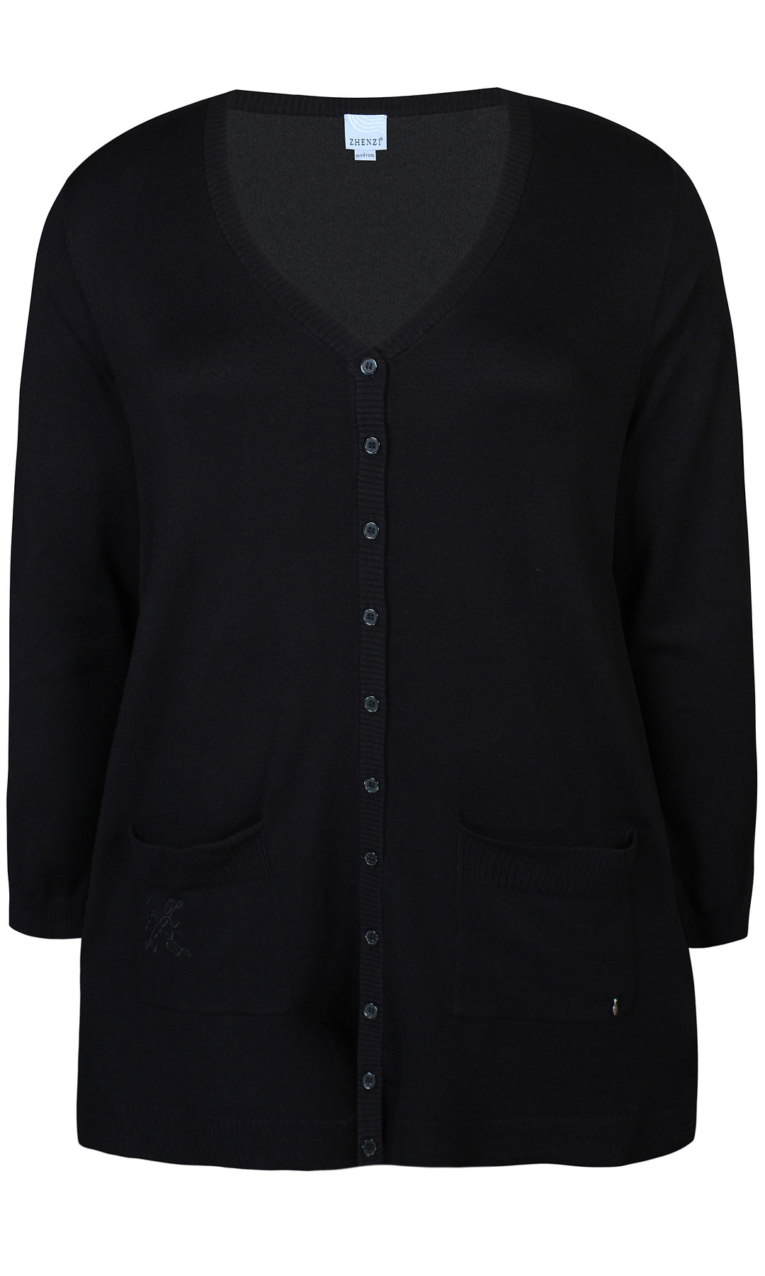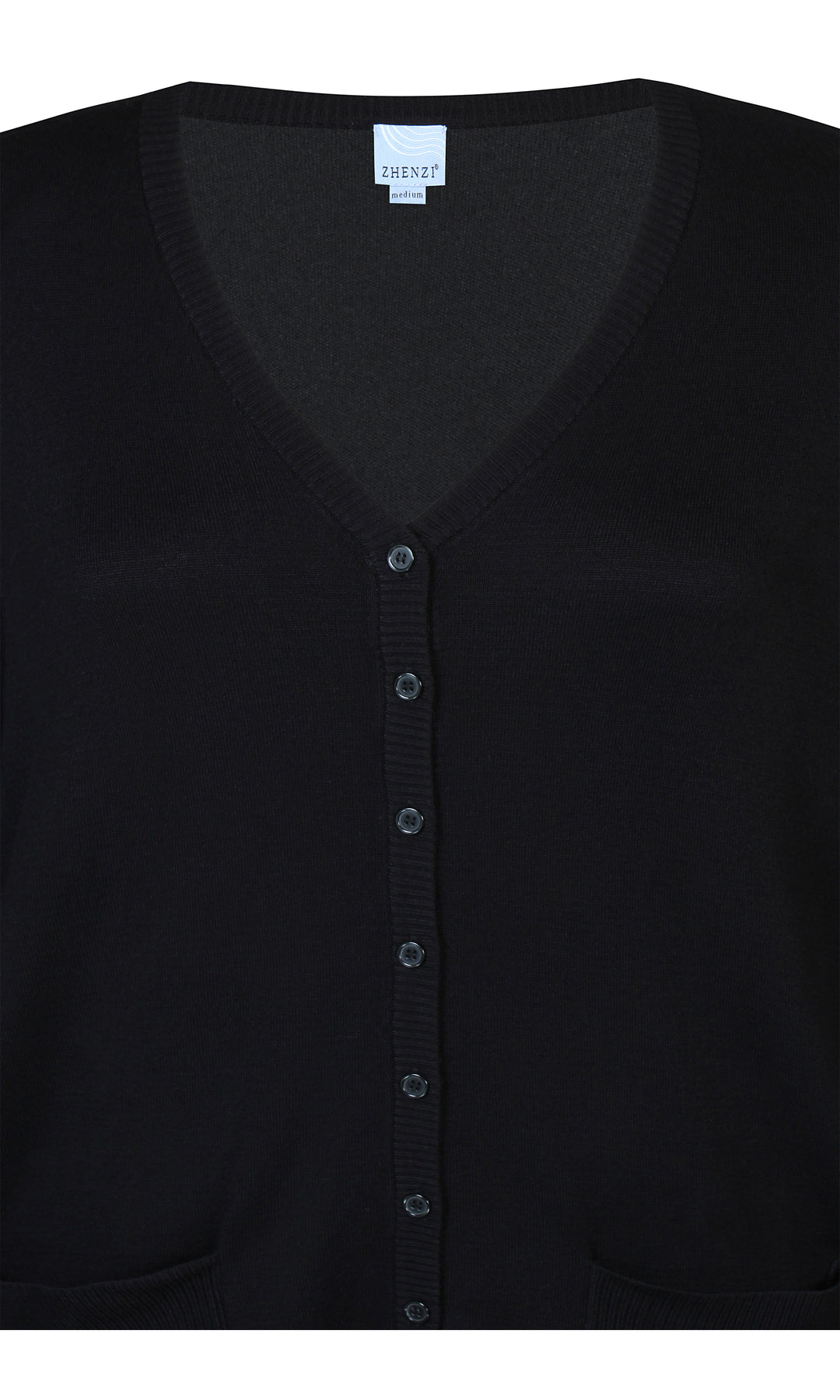 Zhenzi - Kogle mjúk og þægileg peysa með V-hálsmáli. Hneppt að framan, stroff framan á ermum og neðst á bol, vasar að framan.