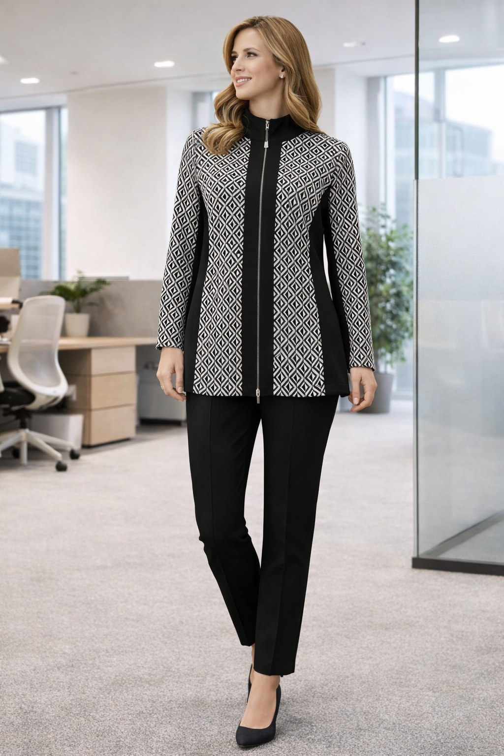 Habella - Faiza sparileg og flott jakkapeysa. Rennd að framan, hár kragi og síðar ermar. Flott bæði hversdags við gallabuxur og treggings, einnig hægt að nota aðeins meira fínt líka, með bara hverju sem er.