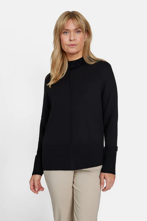 I'cona - Flott rúllukragapeysa með svörtum skrautperlum í kraganum og löngum ermum með stroffi að neðan.