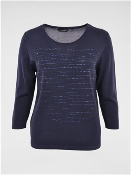 Navigazione - Allegra þunnur kvarterma peysubolur með rúnuðu hálsmáli og sparilegum lágréttum steina línum. Passar bæði hversdags og spari.