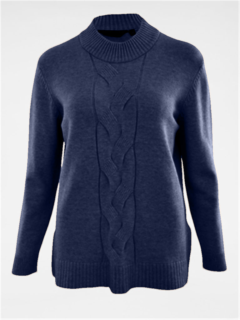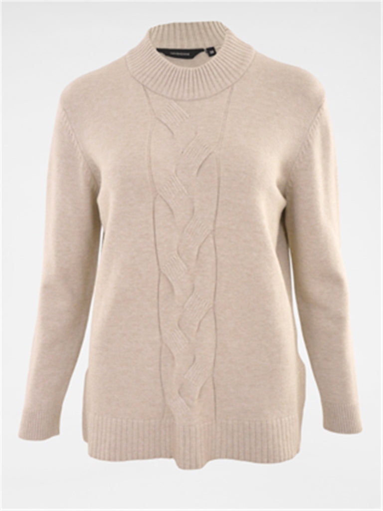 Navigazione - Finley mjúk og þægileg peysa með kaðlamynstri að framan. Kragi, stroff neðst á peysu, ermum og hálsmáli, klauf á hlið.