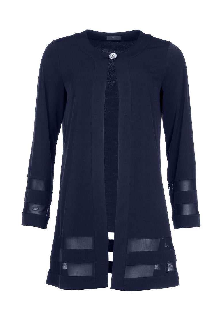 Tia - Aubrie sparileg og fín jakkapeysa. Langar ermar, rúnað hálsmál, hneppt með einni tölu, tvær mesh rendur neðst á ermum og peysu.