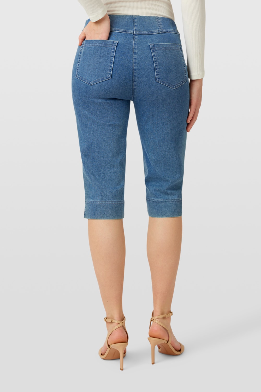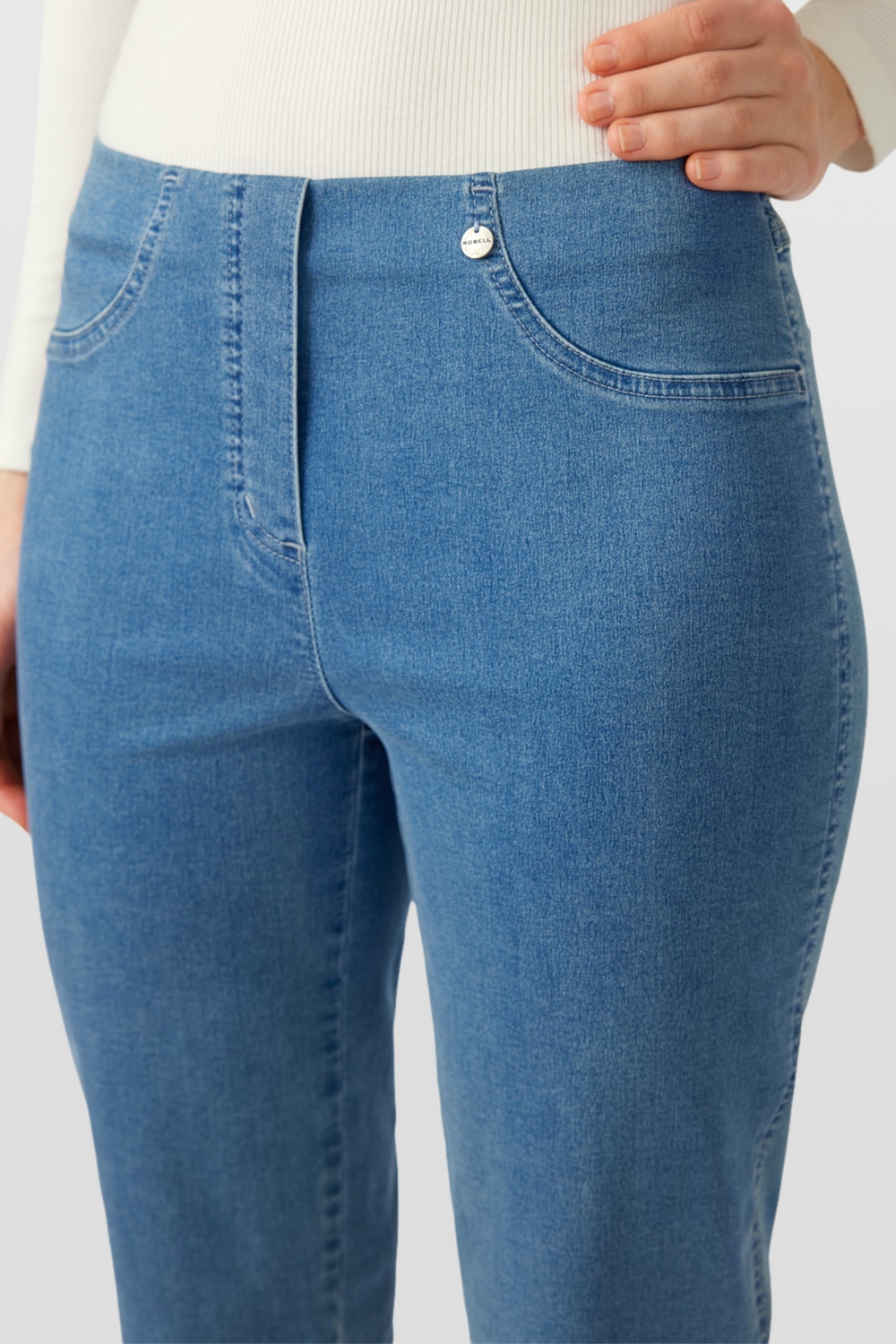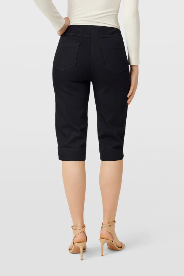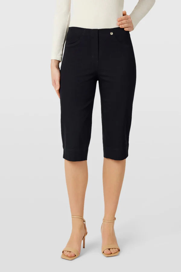 Robell súperþægilegar hnébuxur/Bermudabuxur með teygju í mittið, rennilásaklauf að framan, en það er bara fyrir útlitið, eins eru saumar fyrir vasa, en þær eru vasalausar að framan en með ágætum rassvösum. Flottar og þægilegar hnébuxur sem sitja vel, frábærar í sumarfríinu, siglinguna, golfferðirnar eða bara til að spóka sig í garrðinum eða hvar sem er á góðum degi. Góðar stærðir og mikið strech í efni. Síddin er ca 40 cm