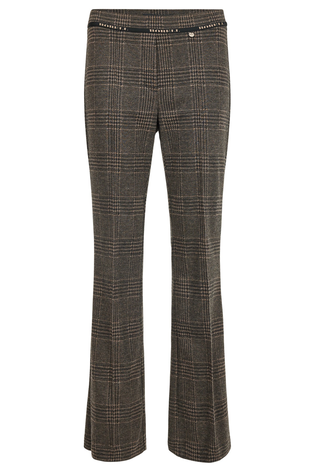 Robell - Joella sparilegar útvíðar strechbuxur með köflóttu mynstri. Teygja í mitti, saumað brot niður eftir skálmum að framan, mjúkt og þægilegt efni. Flottar og þægilegar buxur sem sitja vel, góðar stærðir og mikið strech í efni. Henta vel fyrir konur sem vilja þægilegar og vandaðar buxur, sem passa við öll tækifæri.