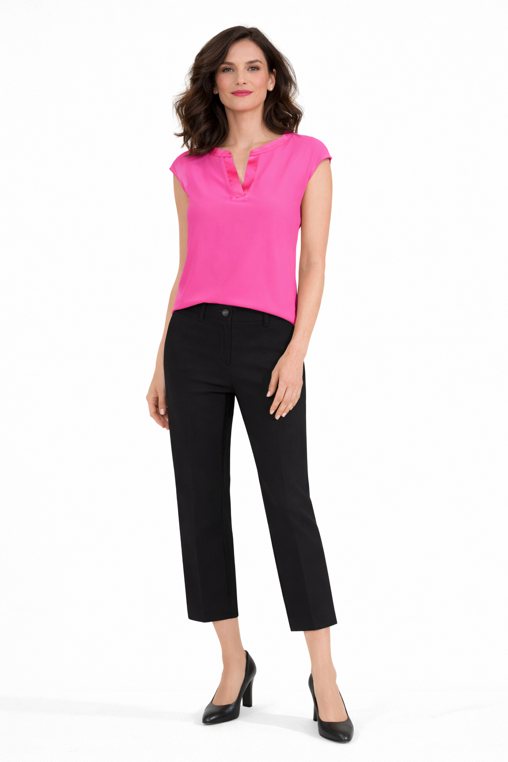 Flottur viskose bolur, með léttu shiffonefni yfir að framan og satinkanti í hálsmáli.