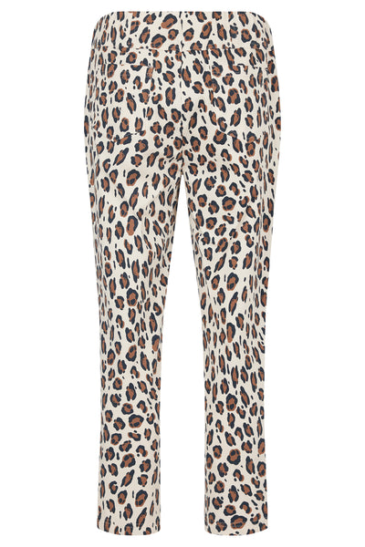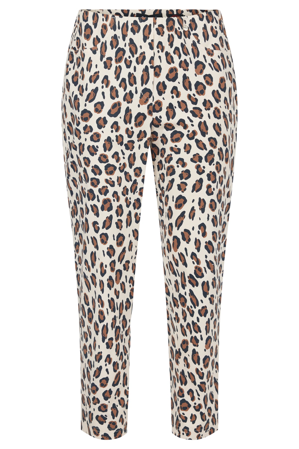 Robell súperþægilegar ökklasíðar strechbuxur með hlébarðamynstri, teygju í mittið, rennilásaklauf að framan, en það er bara fyrir útlitið, eins eru saumar fyrir vasa, en þær eru vasalausar að framan en með ágætum rassvösum.