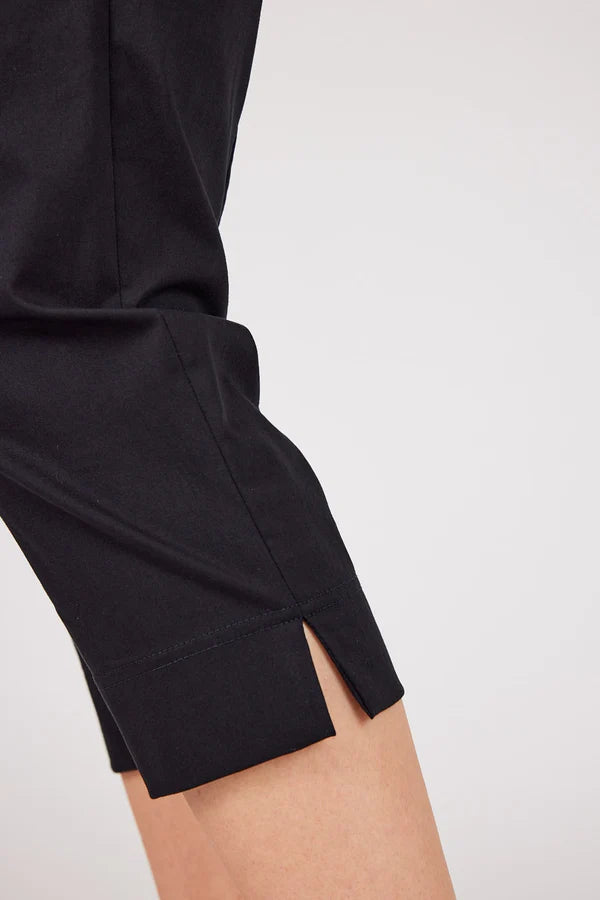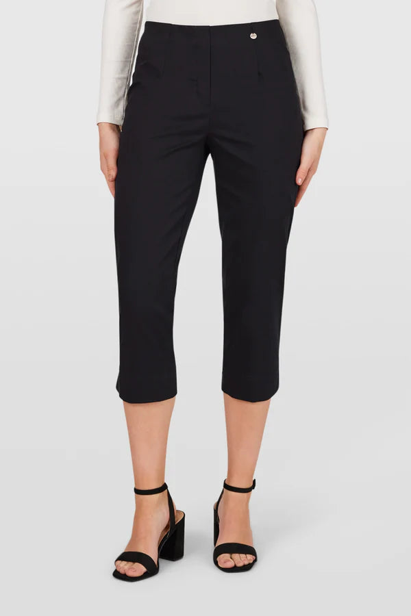 Robell súperþægilegar og léttar kvartbuxur úr léttu gæða bómullar strechefni, með teygju í mittið, rennilásaklauf að framan, sem er bara fyrir útlitið og klauf uppí skálmum. Flottar og þægilegar buxur sem sitja vel og virka bæði hversdags og spari, góðar stærðir og mikið strech í efni. Síddin er ca 55 cm.