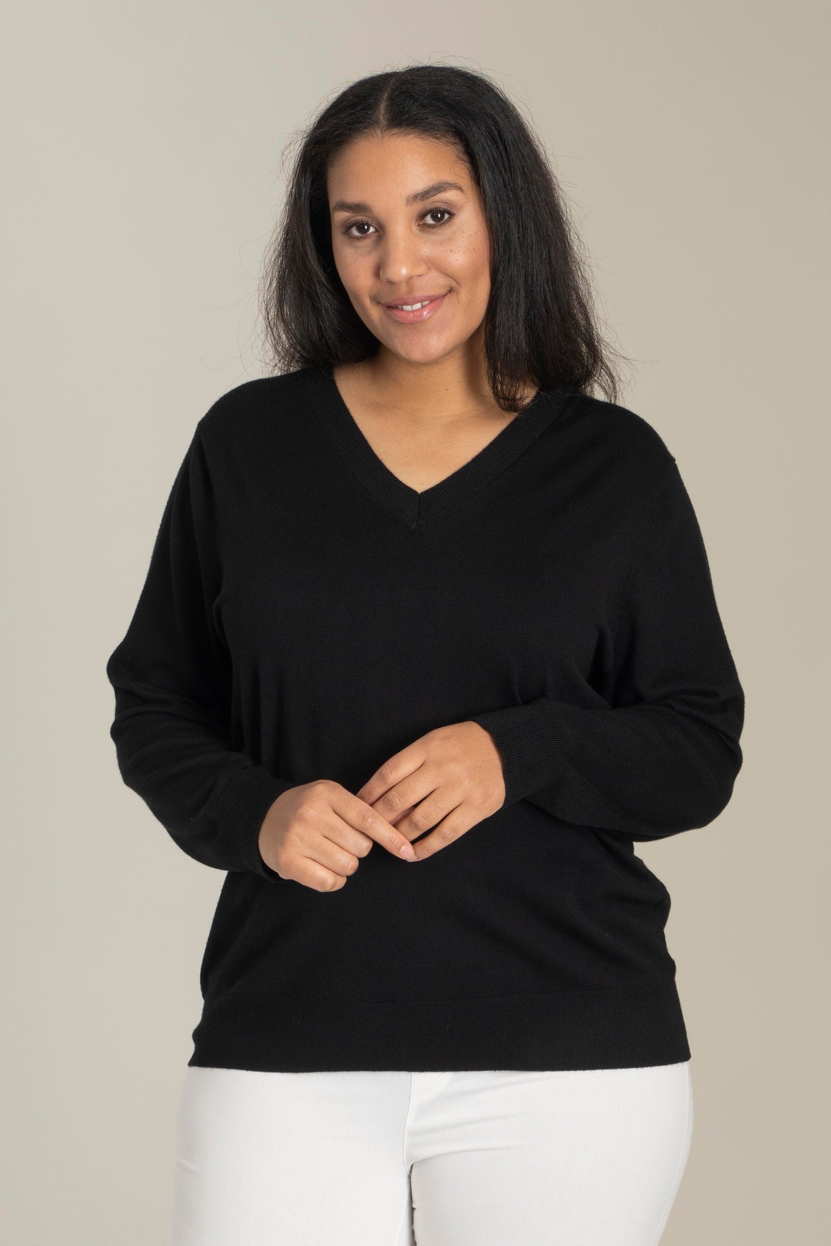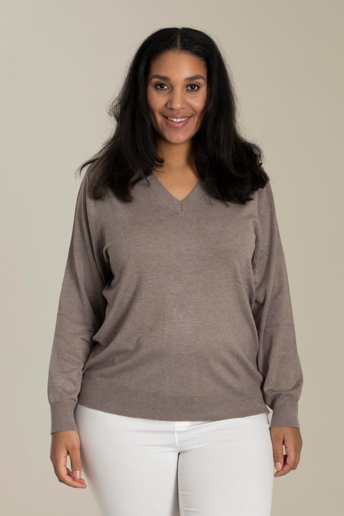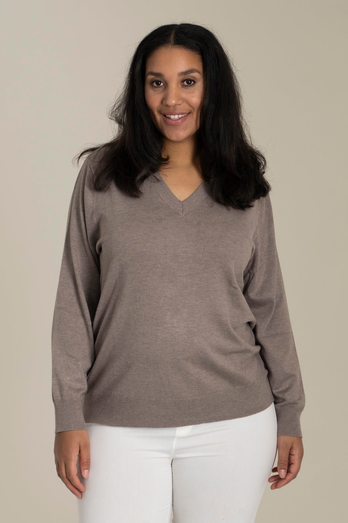 Sandgaard - Helsinki heil prjónapeysa úr mjúku viscose efni, með V-hálsmáli og síðum ermum.