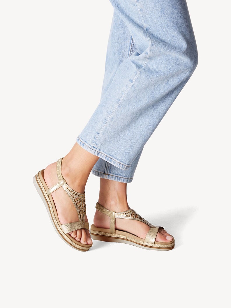 Tamaris - Sætir og flottir sandalar úr góðu leður efni, band um ökkla með glimmer teygju og skraut steinar yfir rist. Þessir setja punktinn yfir i-ið við hvaða flotta dress sem er.