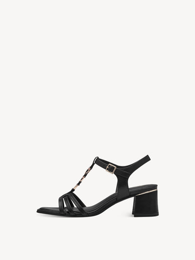 Tamaris - Sætir og flottir sandalar úr góðu leður efni með hæl, stillanlegt band um ökkla og silfur skraut yfir rist. Þessir setja punktinn yfir i-ið við hvaða flotta dress sem er.