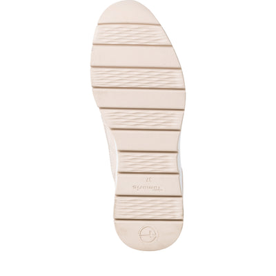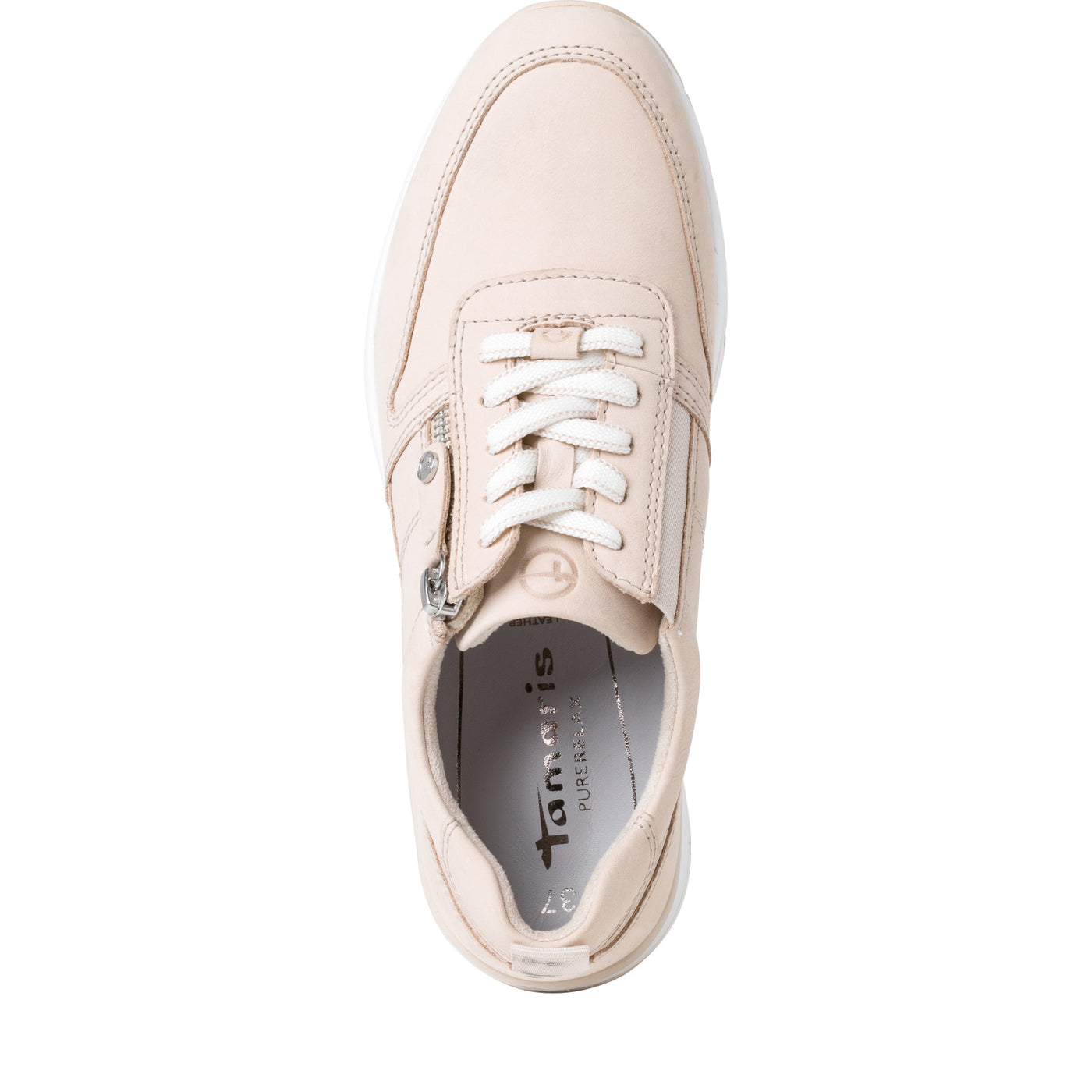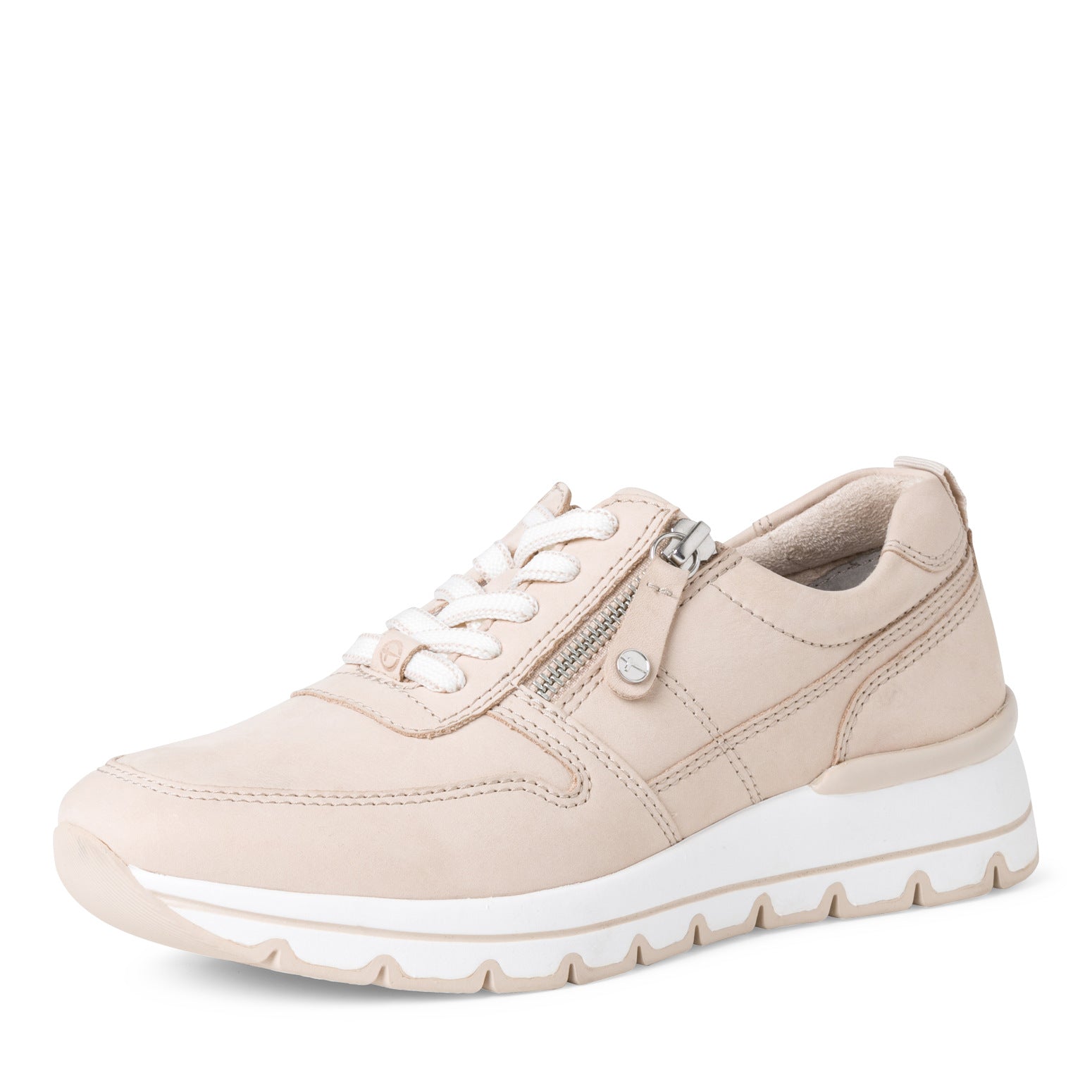 Tamaris - Æðislegir leður strigaskór frá Tamaris. Ljósir og fallegir í beige / Ivory lit . Reimaðir en með rennilás utanfótar, þannig að það þarf ekki að reima í hvert skipti sem farið er í þá.