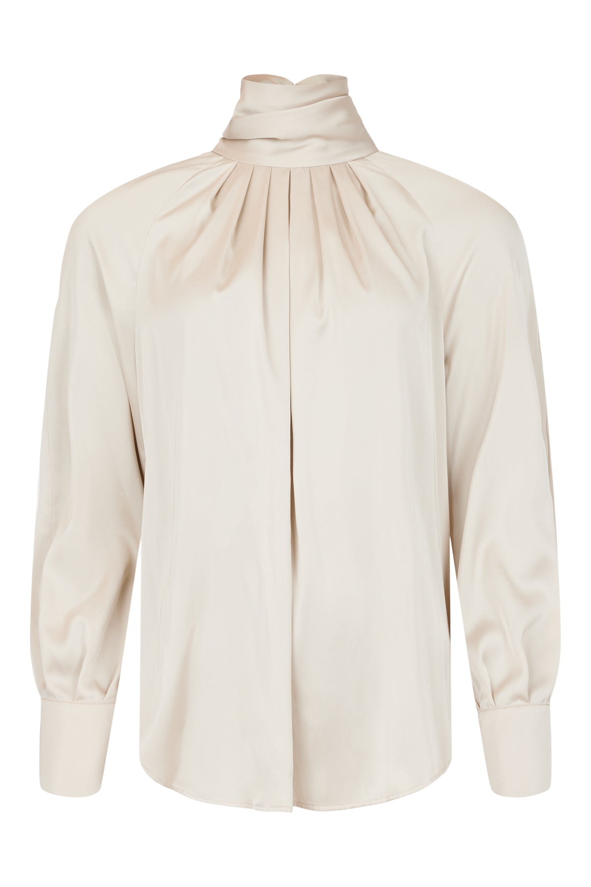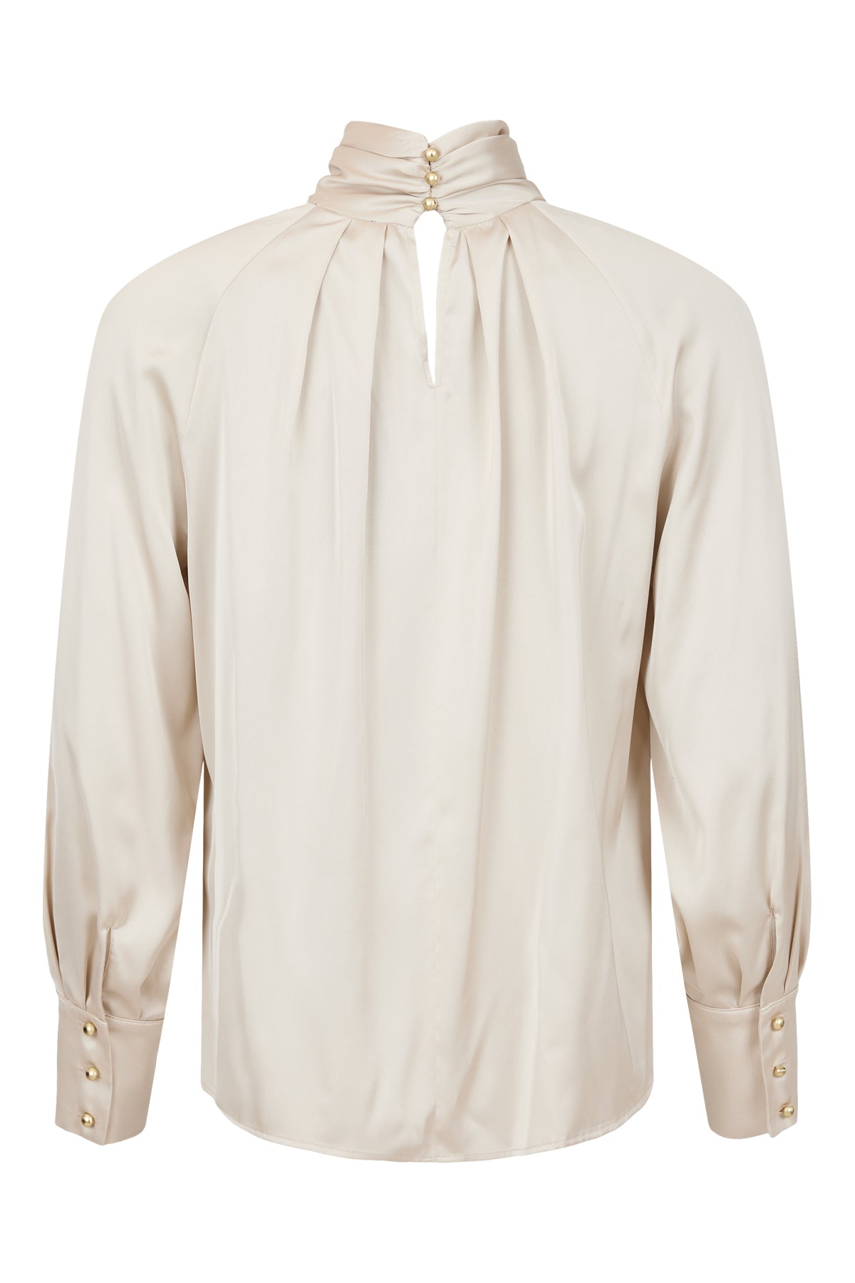 Tia - Mayra falleg og sparileg blússa. Langar ermar, hár kragi, keyhole op að aftan með tölum, tölur neðst á ermum.