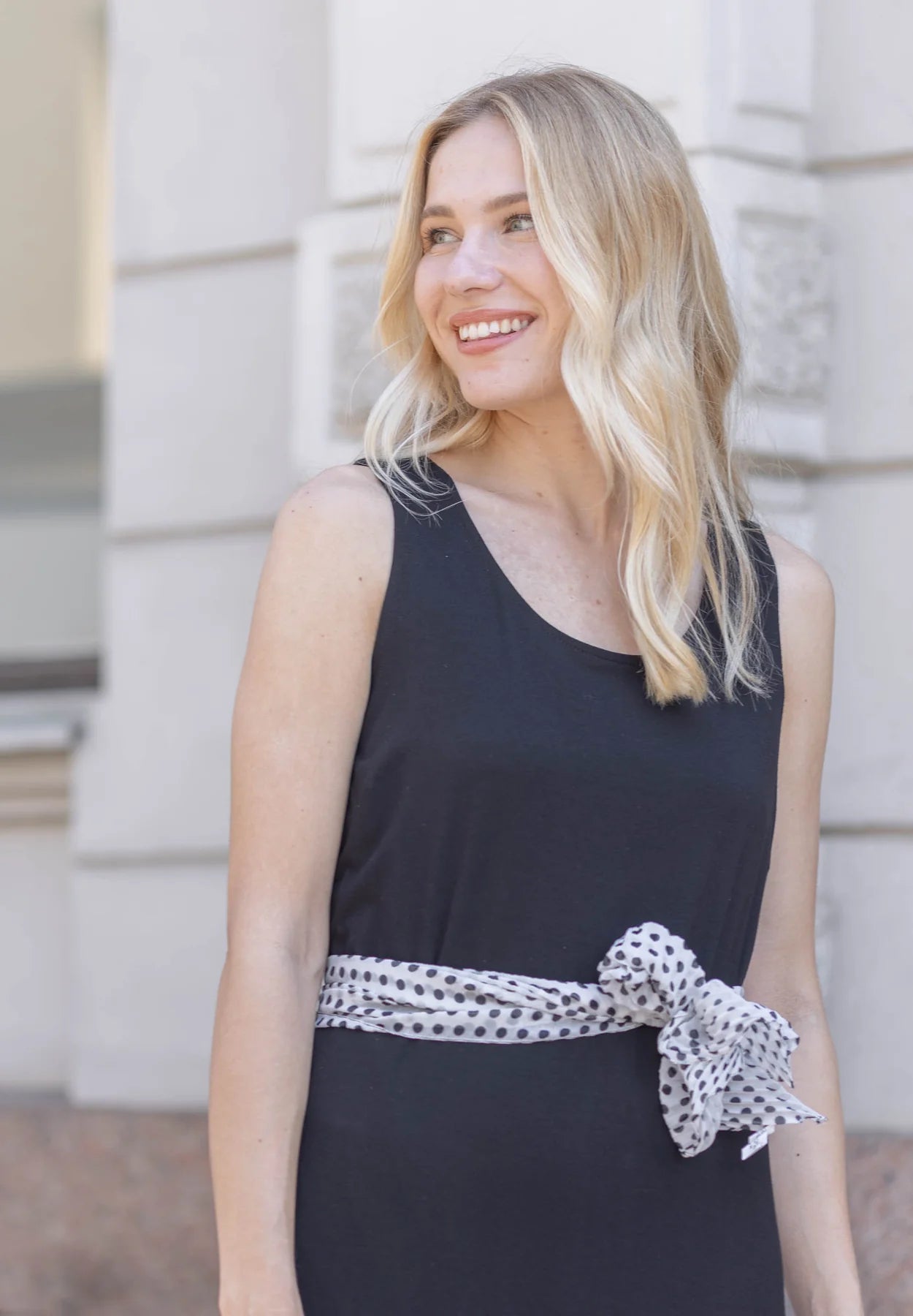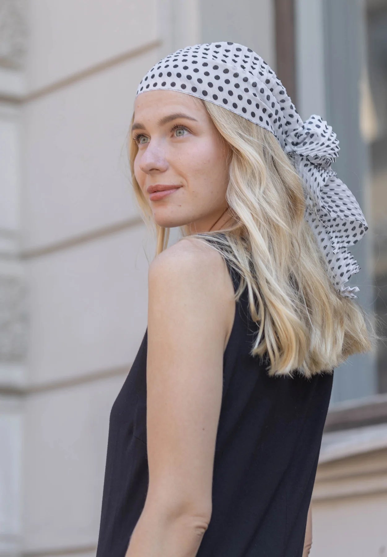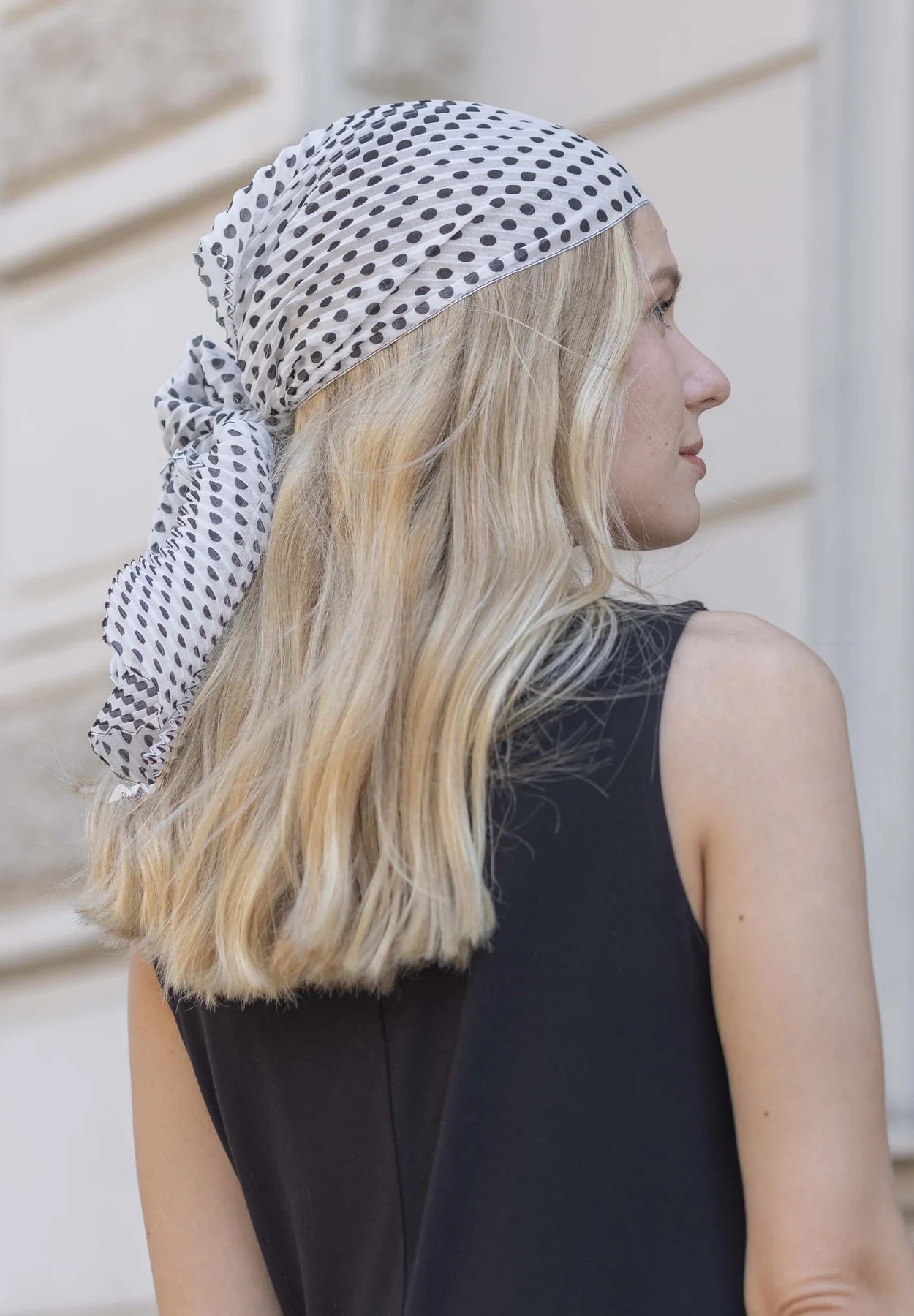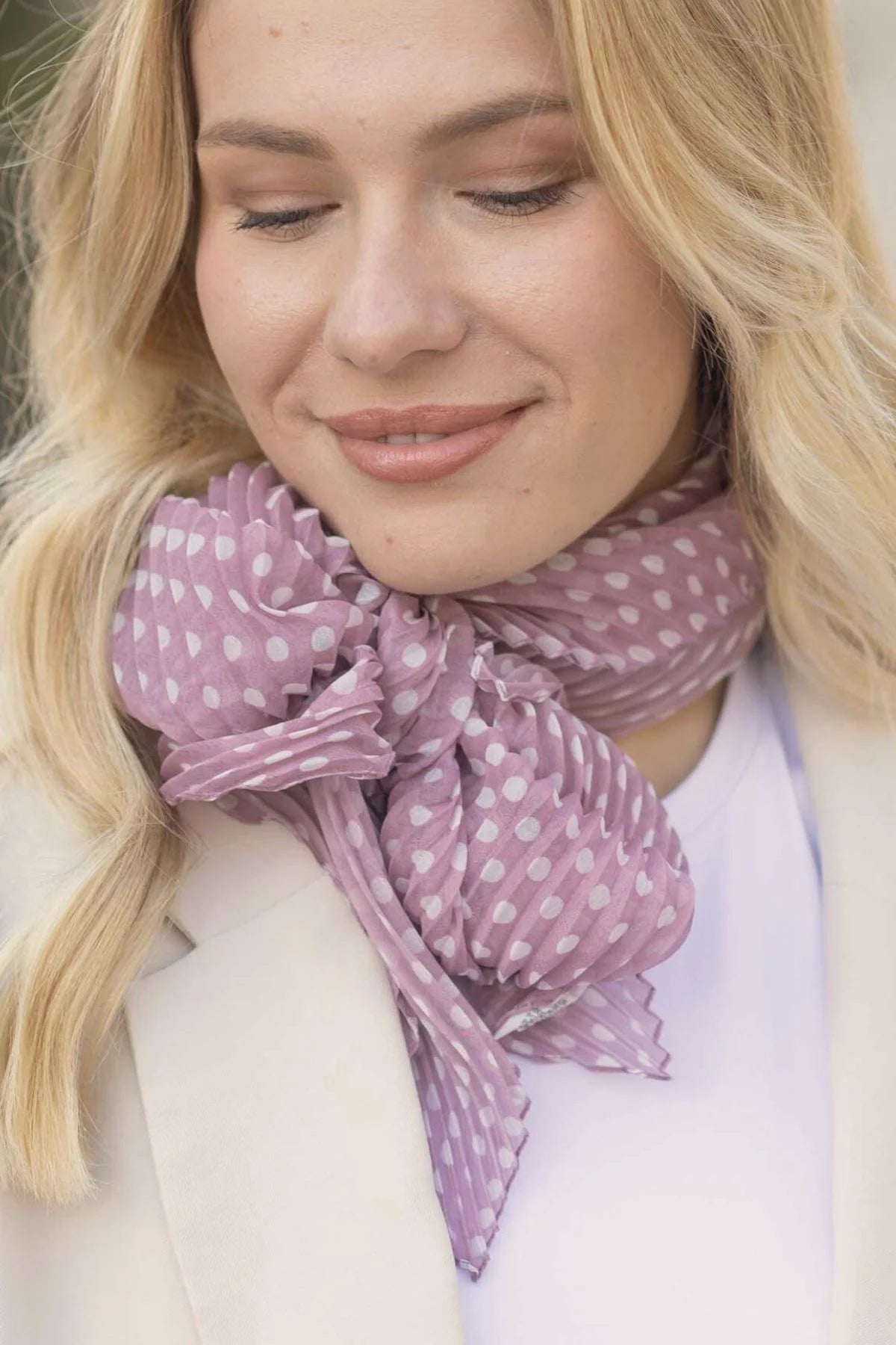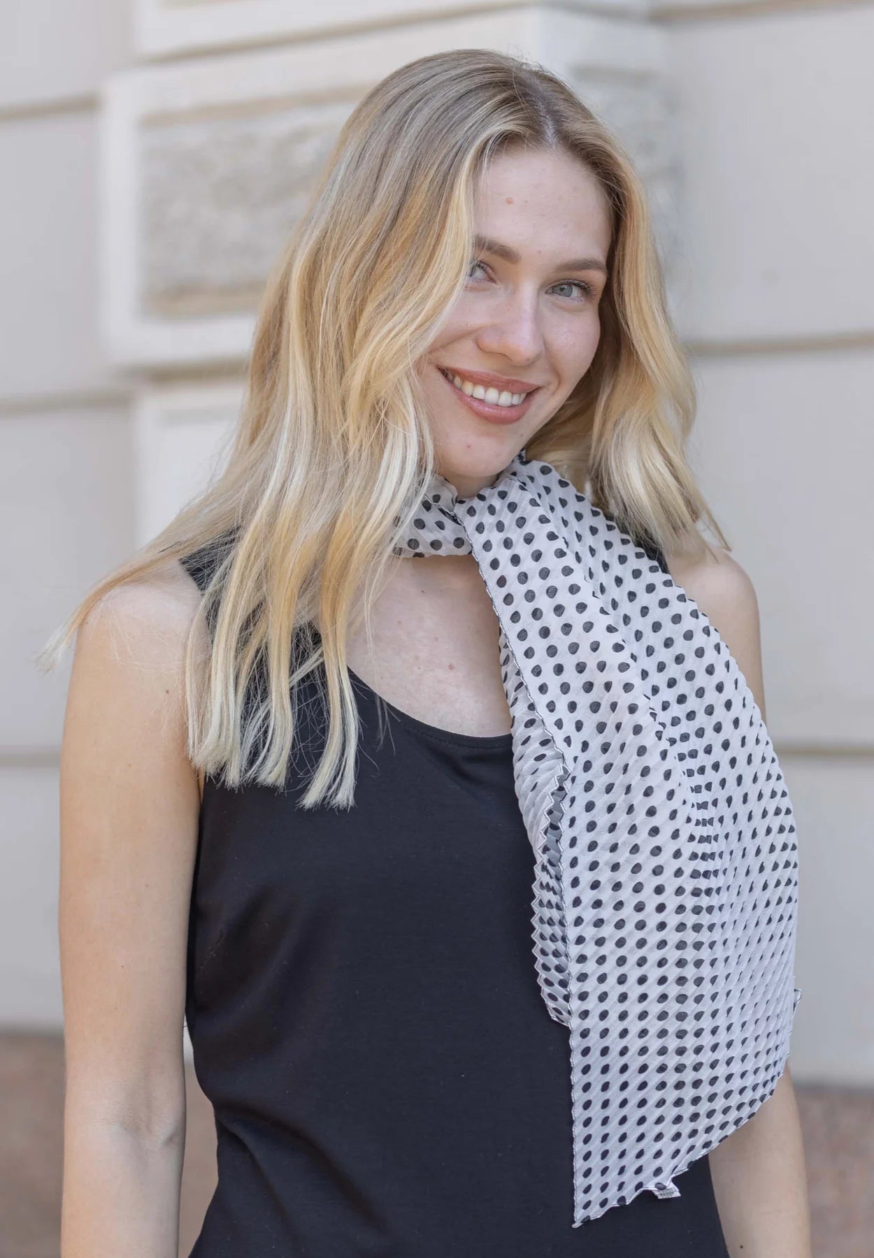 Lasessor - Milka plíseraður klútur með doppóttu mynstri sem gengur við allt. Léttur og lipur klútur sem hægt er að nota eins og klút, hárskraut, belti eða breiða yfir axlirnar.