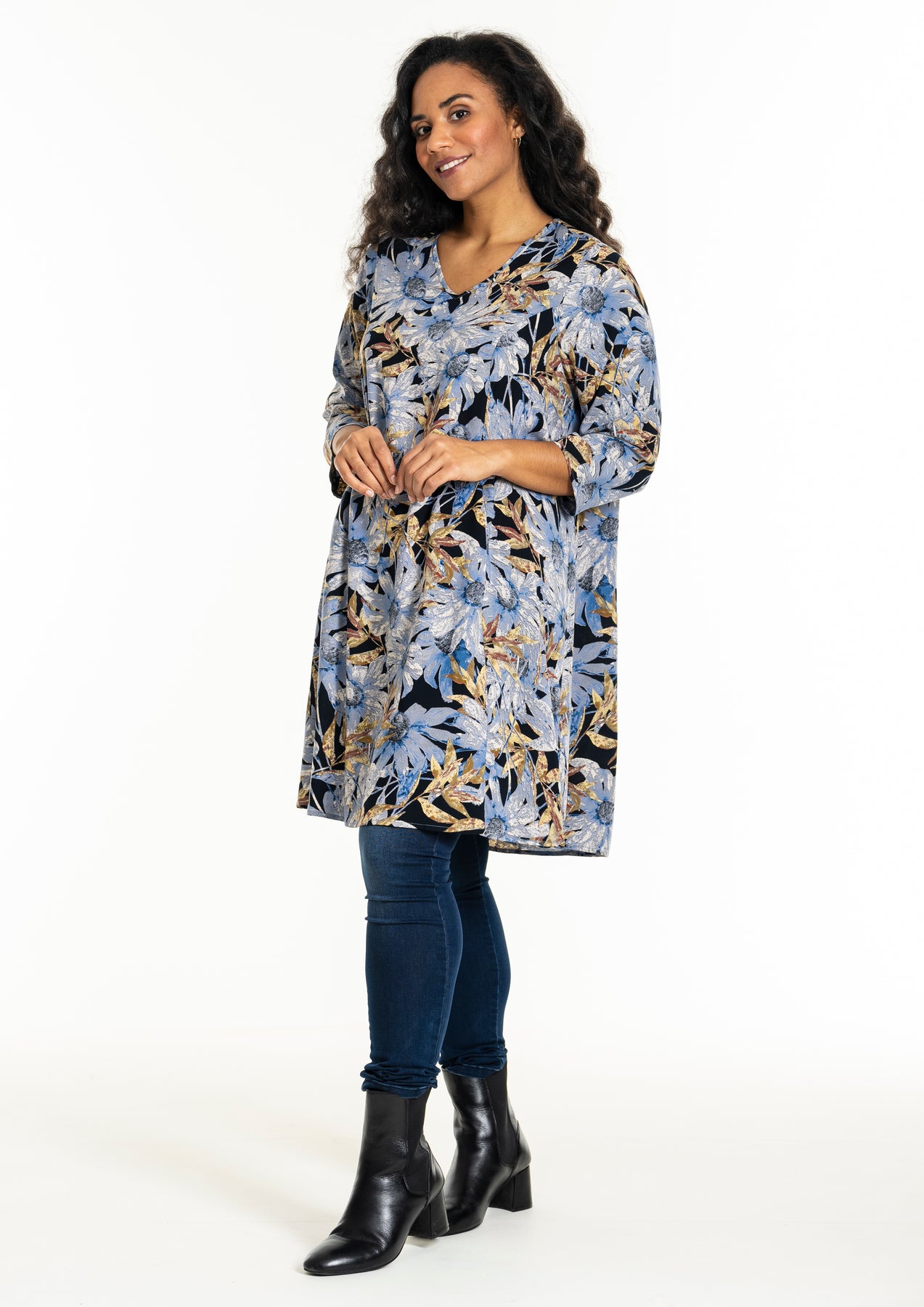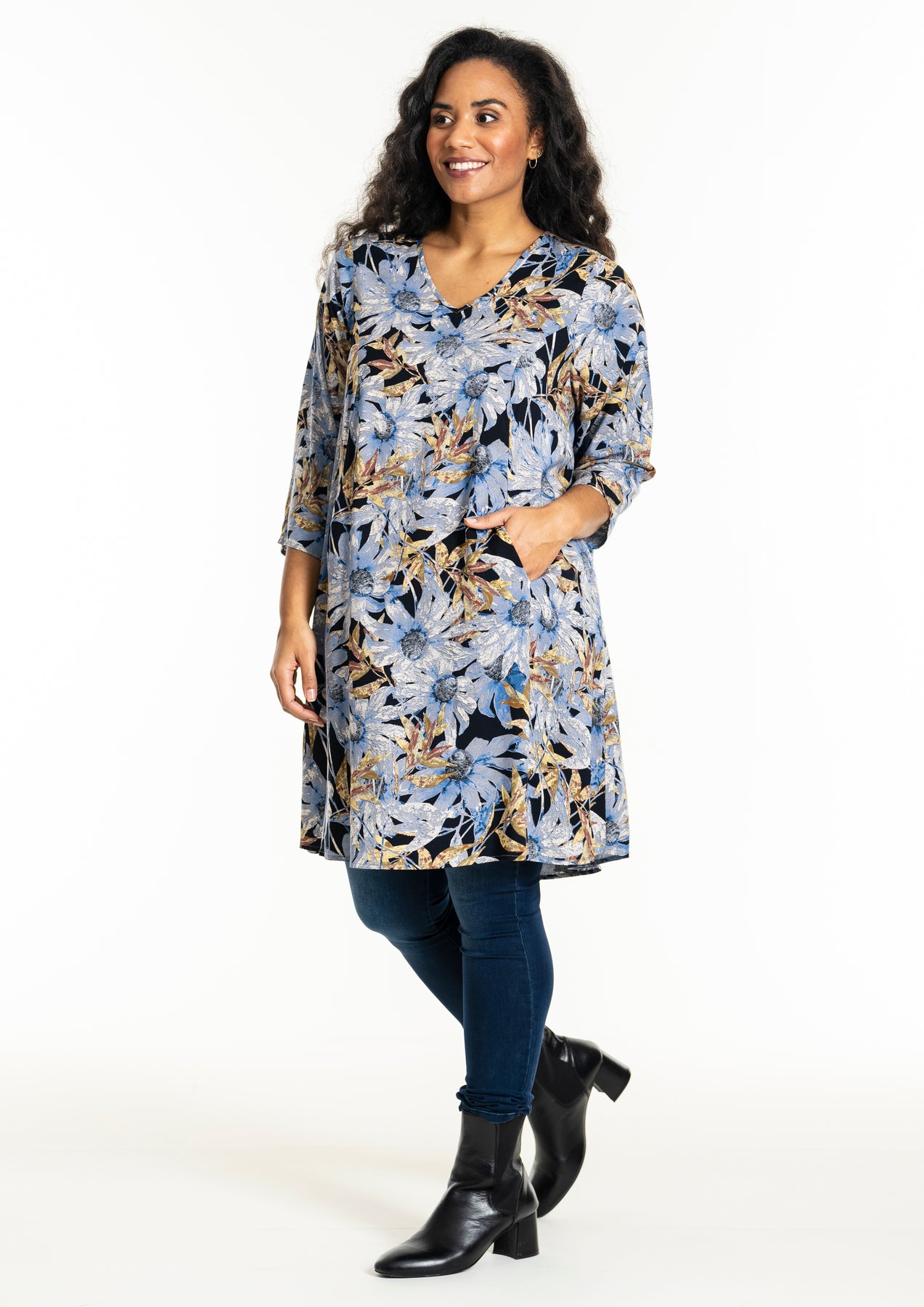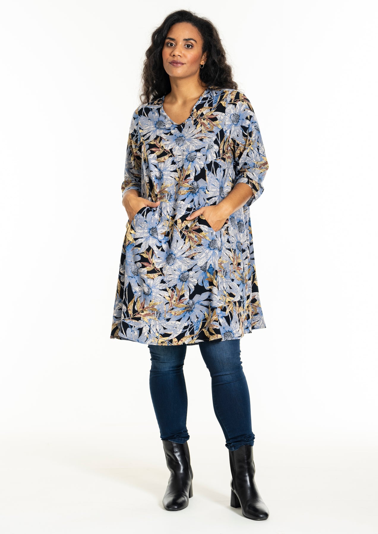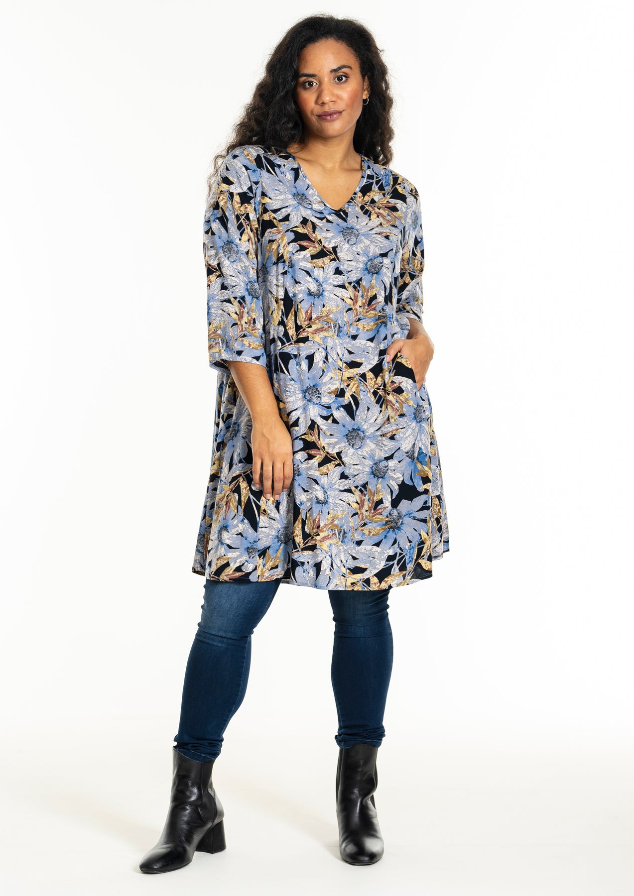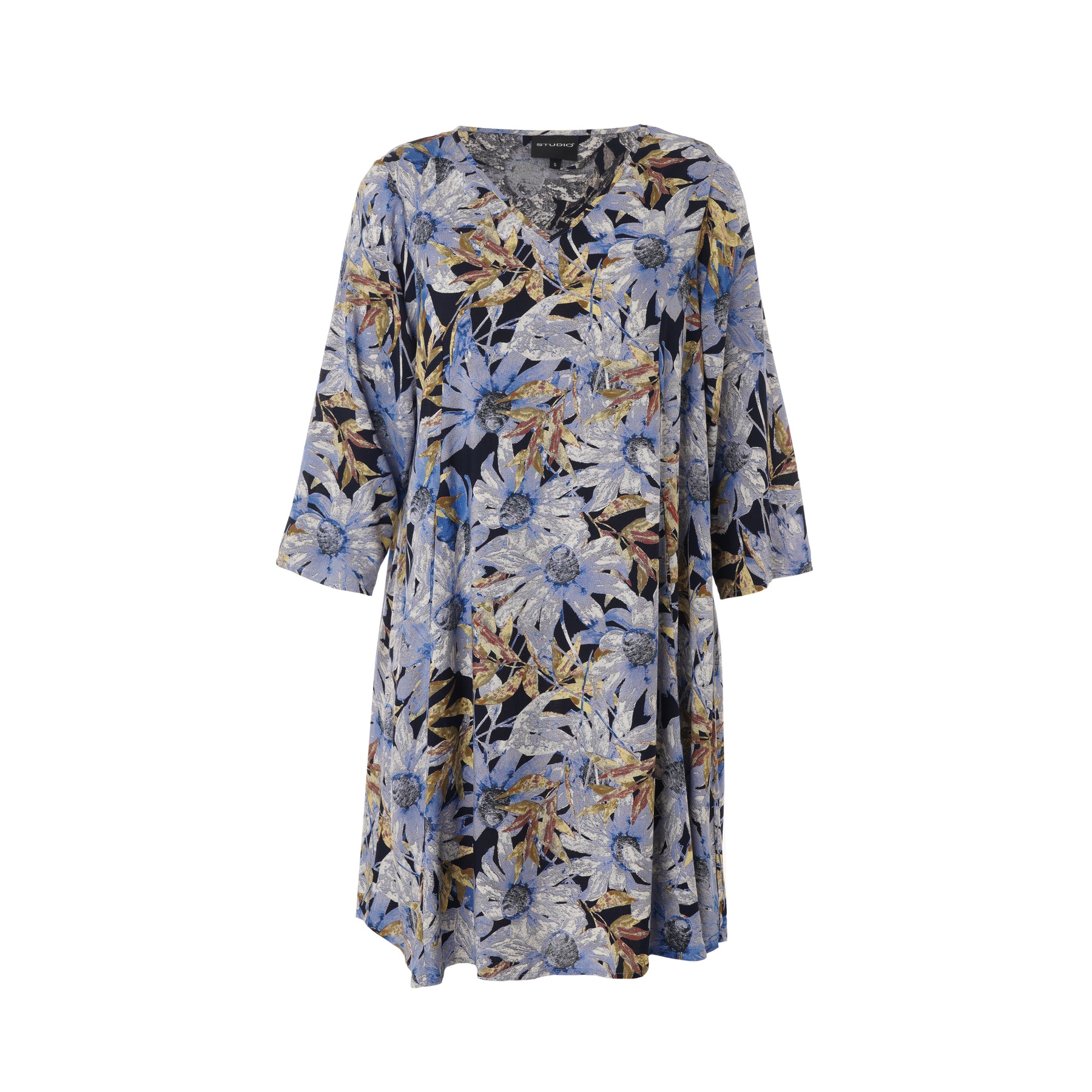 Studio - Léttur og þægilegur kjóll í 100% viskós efni, fallegt blómamynstur.  V-hálsmál, kvart ermar og góðir vasar á hliðum. Smelltu þér í léttan jakka eða peysu yfir og þú ert tilbúin í hvað sem er.