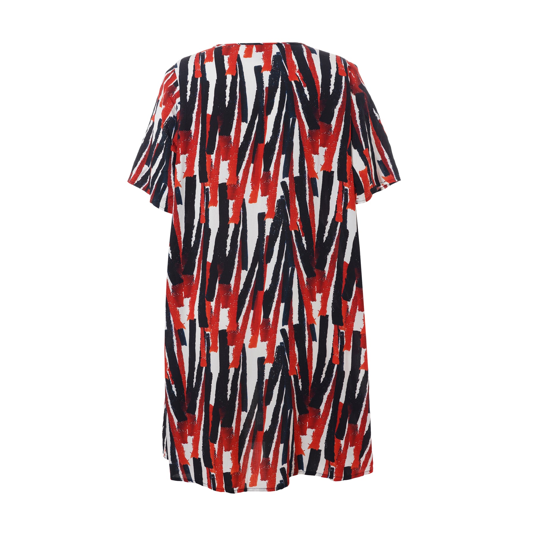 Studio - Birgitte stuttermakjóll með svörtu og rauðu mynstri