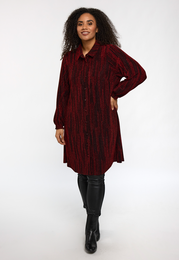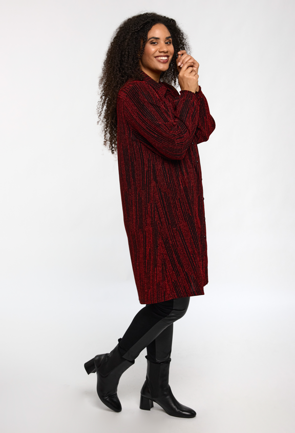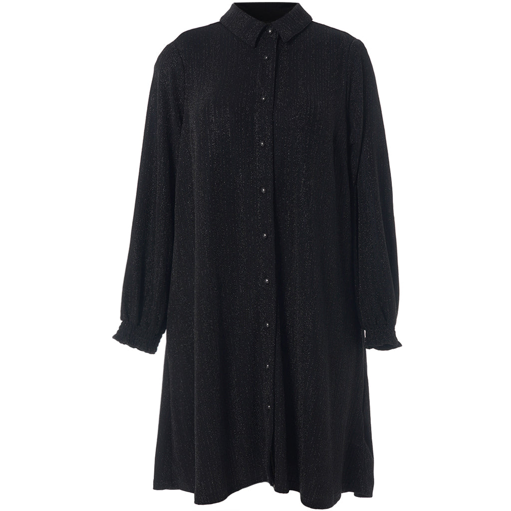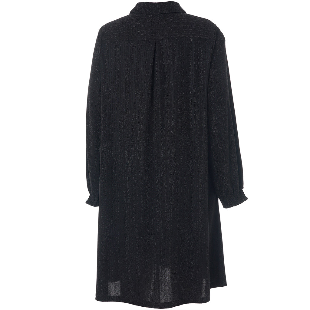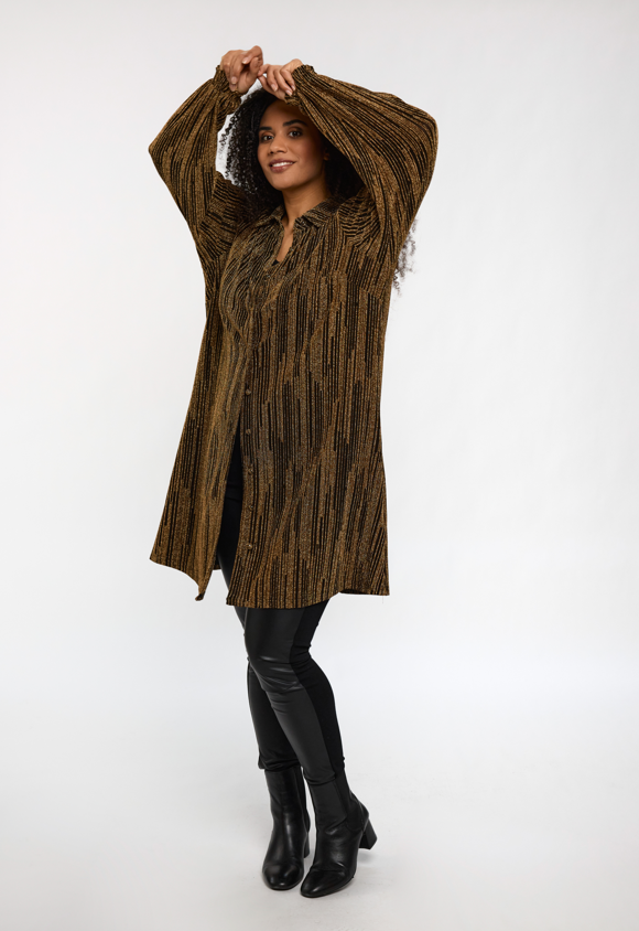 Studio - Emilie falleg og sparileg síð skyrta með glimmer áferð. Hneppt alla leið niður, skyrtukragi, langar ermar með teygju. Hægt að nota opna yfir buxur og topp eða lokaða eins og kjól.