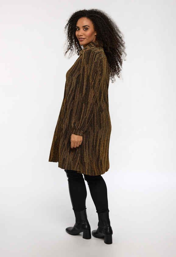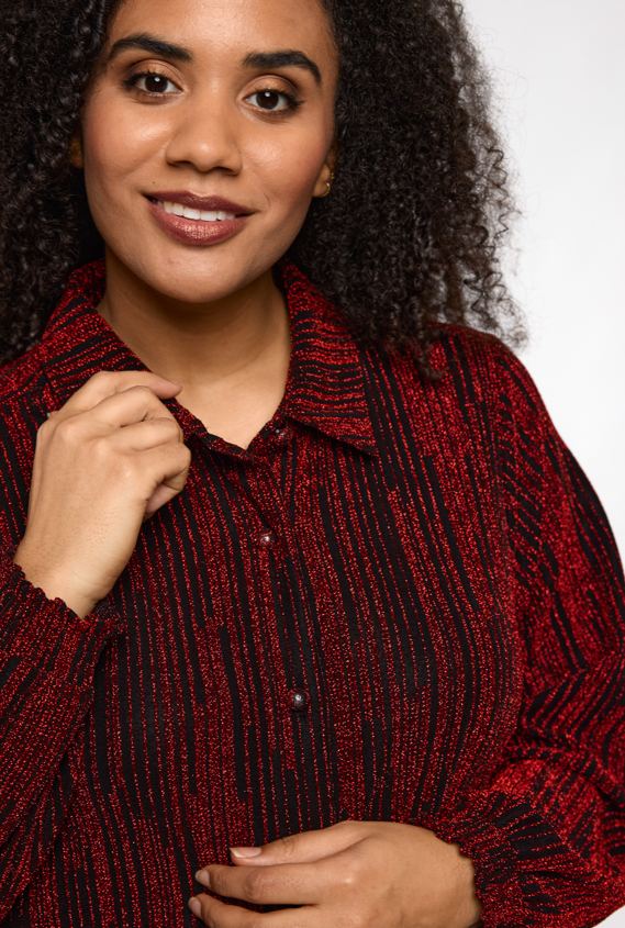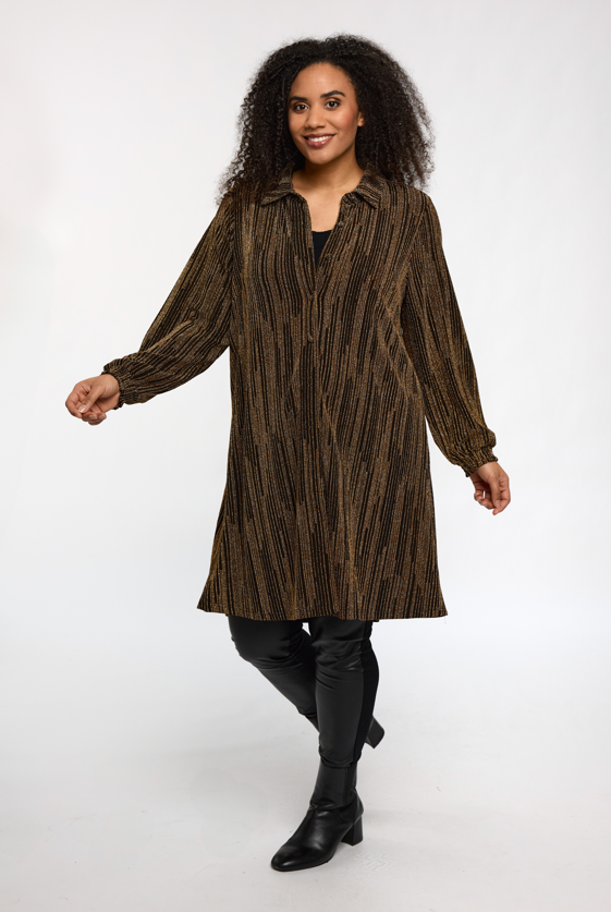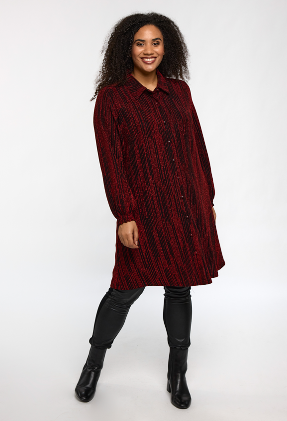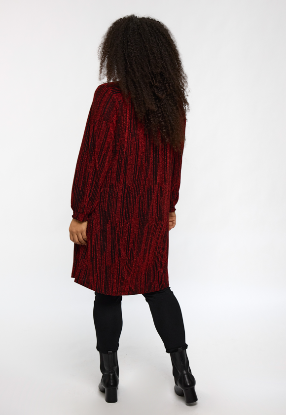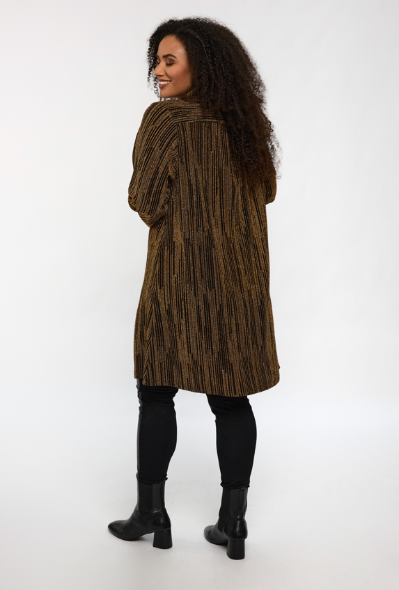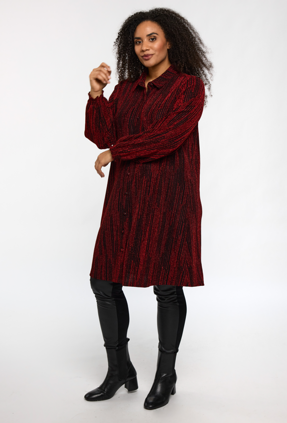 Studio - Emilie falleg og sparileg síð skyrta með glimmer áferð. Hneppt alla leið niður, skyrtukragi, langar ermar með teygju. Hægt að nota opna yfir buxur og topp eða lokaða eins og kjól.