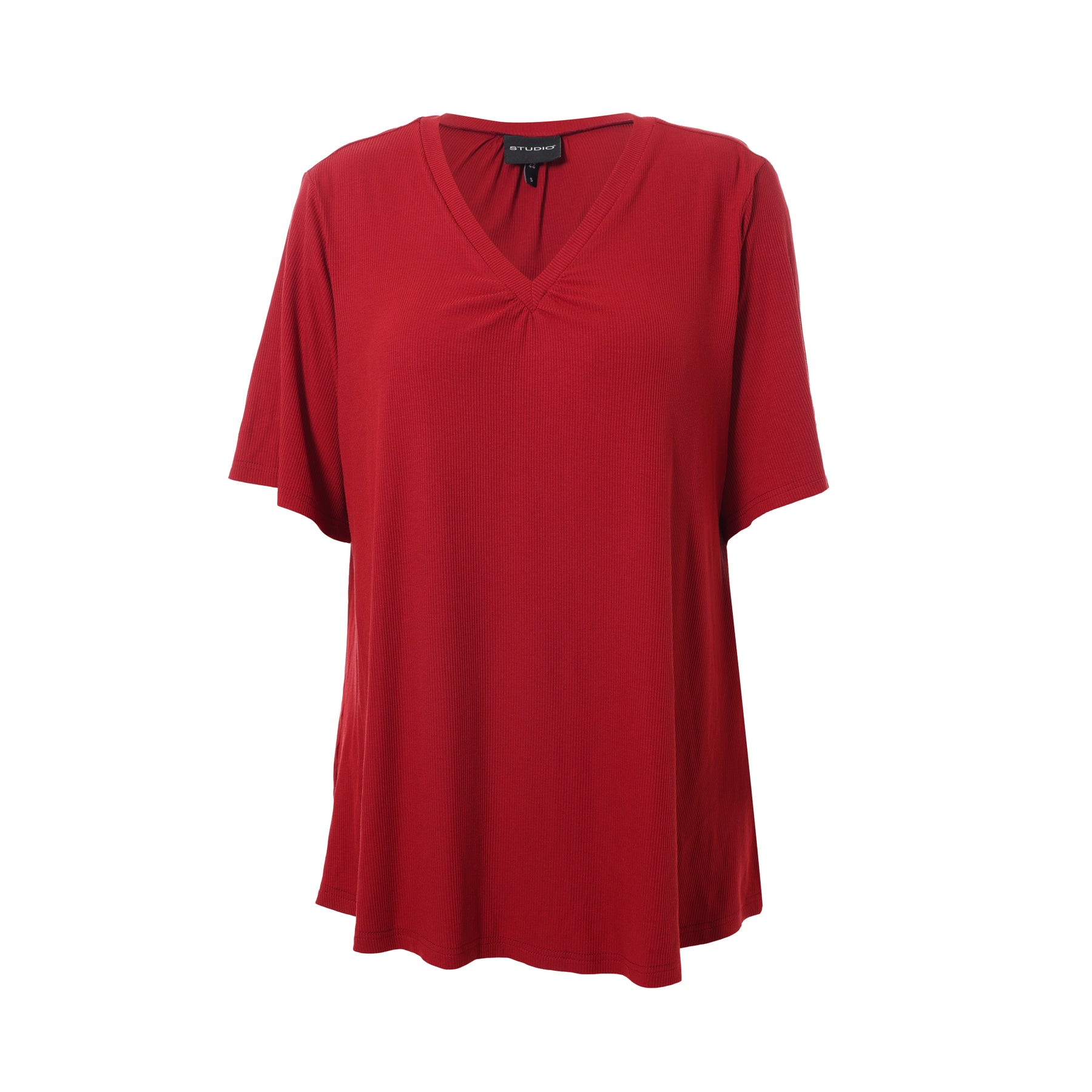 Studio - Lykke góður stuttermabolur með A-sniði, V-hálsmáli með smá rykkingu og smá rykkingu í baki til að gefa enn betri vídd.